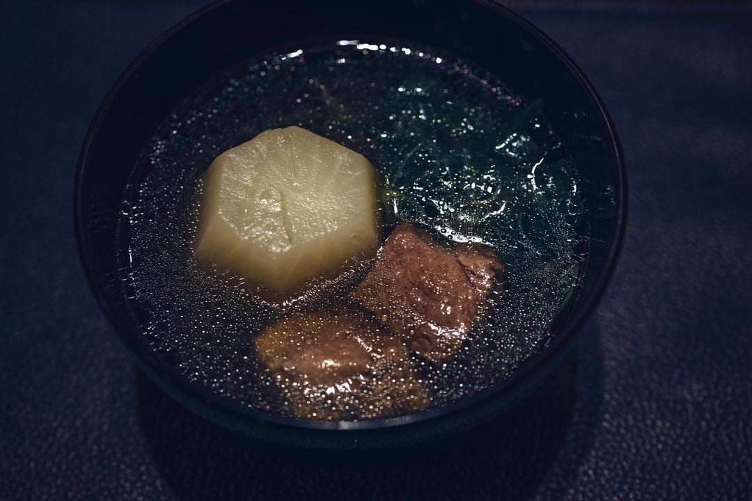 Duck, turnip and shungiku in bonita broth – rich and warm, duck had great umami flavour. Duck meat was tender and sof