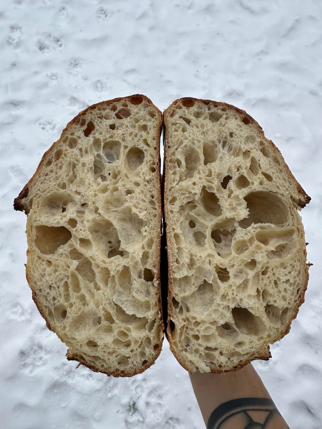 Ohhhh that warm loaf in snowy weather must be heaven 🍞
