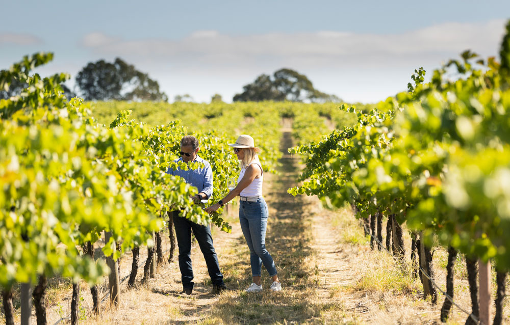 Amid a 300-hectare property of sheep-grazed pastures, century-old olive trees and sloping vineyards sits Pindarie’s cellar door, housed within beautifully-restored stables. Custodians Tony Brooks and Wendy Allan have transformed the once run-down and over-cleared farm into a sustainable haven, planting more than 12,500 trees over 30 years, while championing emerging variety viticulture. It remains a family owned and operated farm – the pair living on the property’s historic homestead where they raised their three children. They welcome you to a guided tasting, then to enjoy lunch at the on-site cafe, Grain Store.