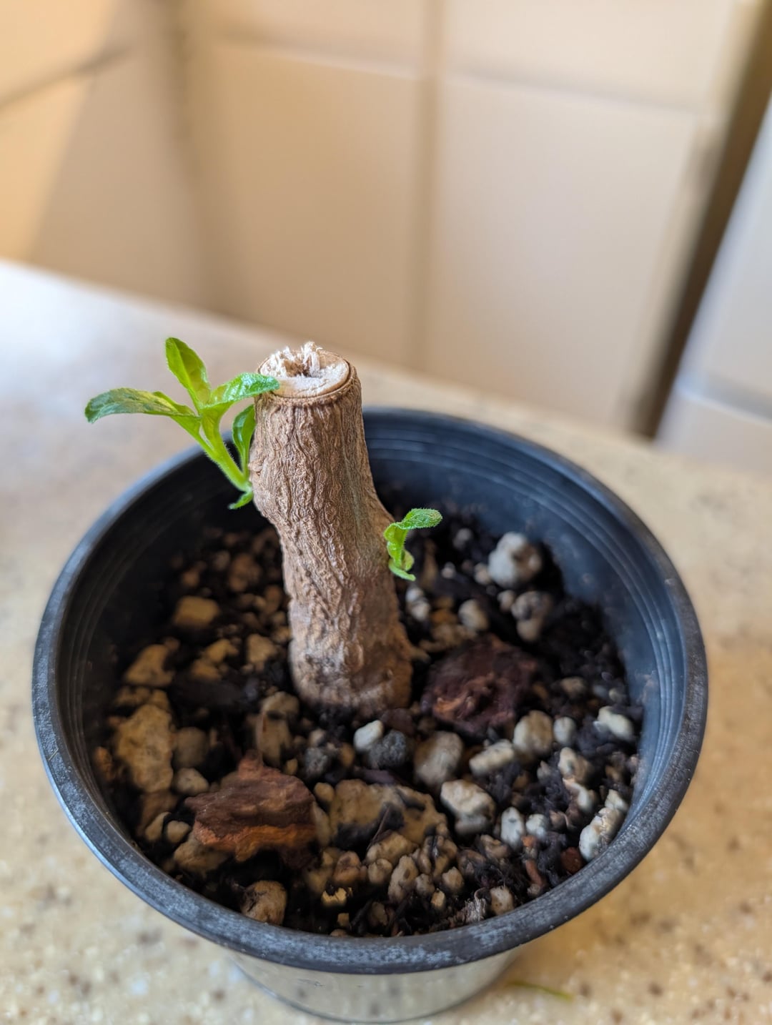My strategy for the winter is to cut back all the branches, most of the roots, place in cactus soil under a barrina bar light, and water once a month. I do this around mid October before it gets cold