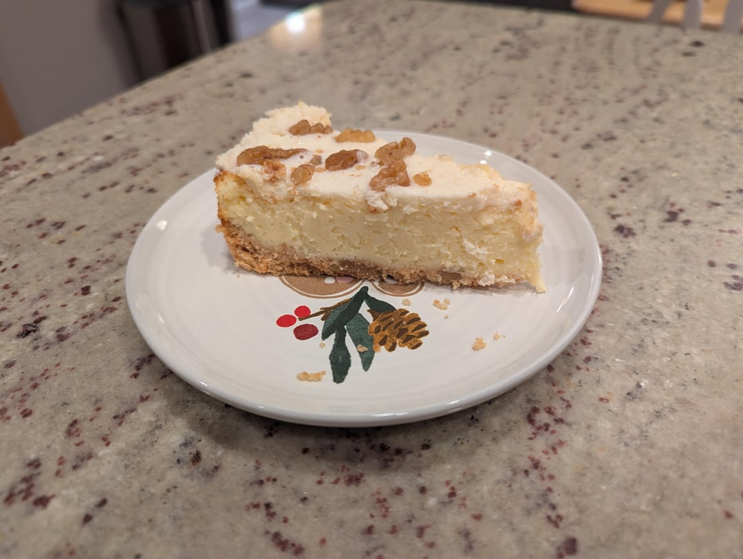 I made this cheesecake for a holiday party at work recently and it was a hit! This recipe is a little less sweet than a traditional cheesecake, but just as creamy and delicious. I have no clue how my grandmother heard about Zwieback. She's Pennsylvania Dutch, and so has Germanic roots, but I have never heard her talk about German food at all and I had to look it up online. Luckily I found the Zwieback at Wegmans, or I'd have been out of luck. The only thing I changed was the amount of sugar. The recipe calls for 1/2 cup sugar split between the custard and sour cream topping, but doesn't specify how much goes into each. The custard didn't taste sweet until I'd added 1/2c, so I added another 1/4c to the sour cream topping. See the last two photos for her recipe card, or my transcription below. Happy holidays!