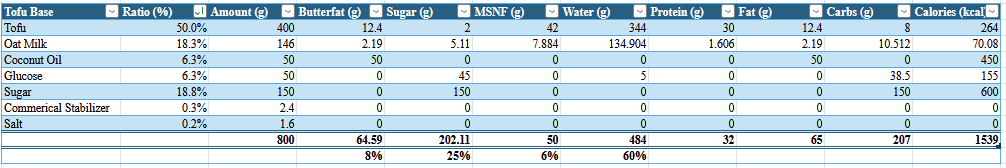 - 150g Oat Milk (18.3%), you can use any milk, but oats match the tofu flavor