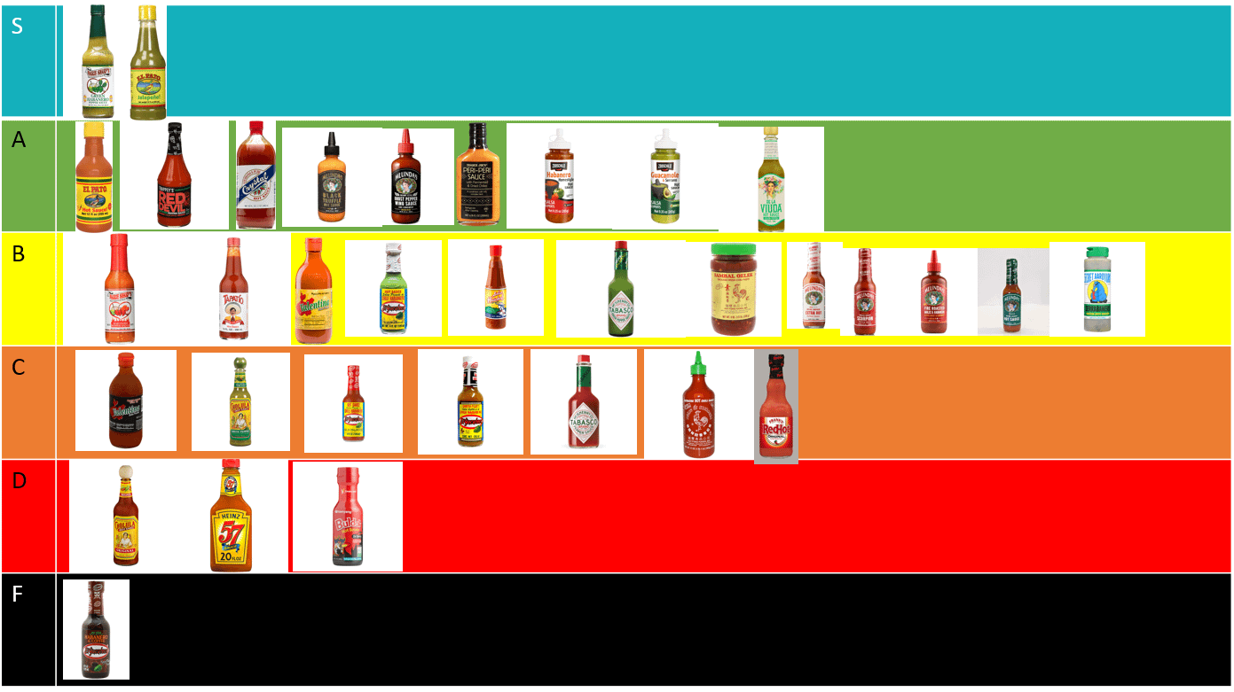 My partner and I share pretty similar taste in hot sauces, but we're growing a bit bored of our usual favorites. Looking for recommendations that align with our current preferences. There are just so many hot sauces out there and it doesn't feel great buying one just to try a little bit and not like it. We've put our preferences organized as a tier list above. Most of them are widely available, with the exception of el pato which we last saw at the 99c only store. Thanks.