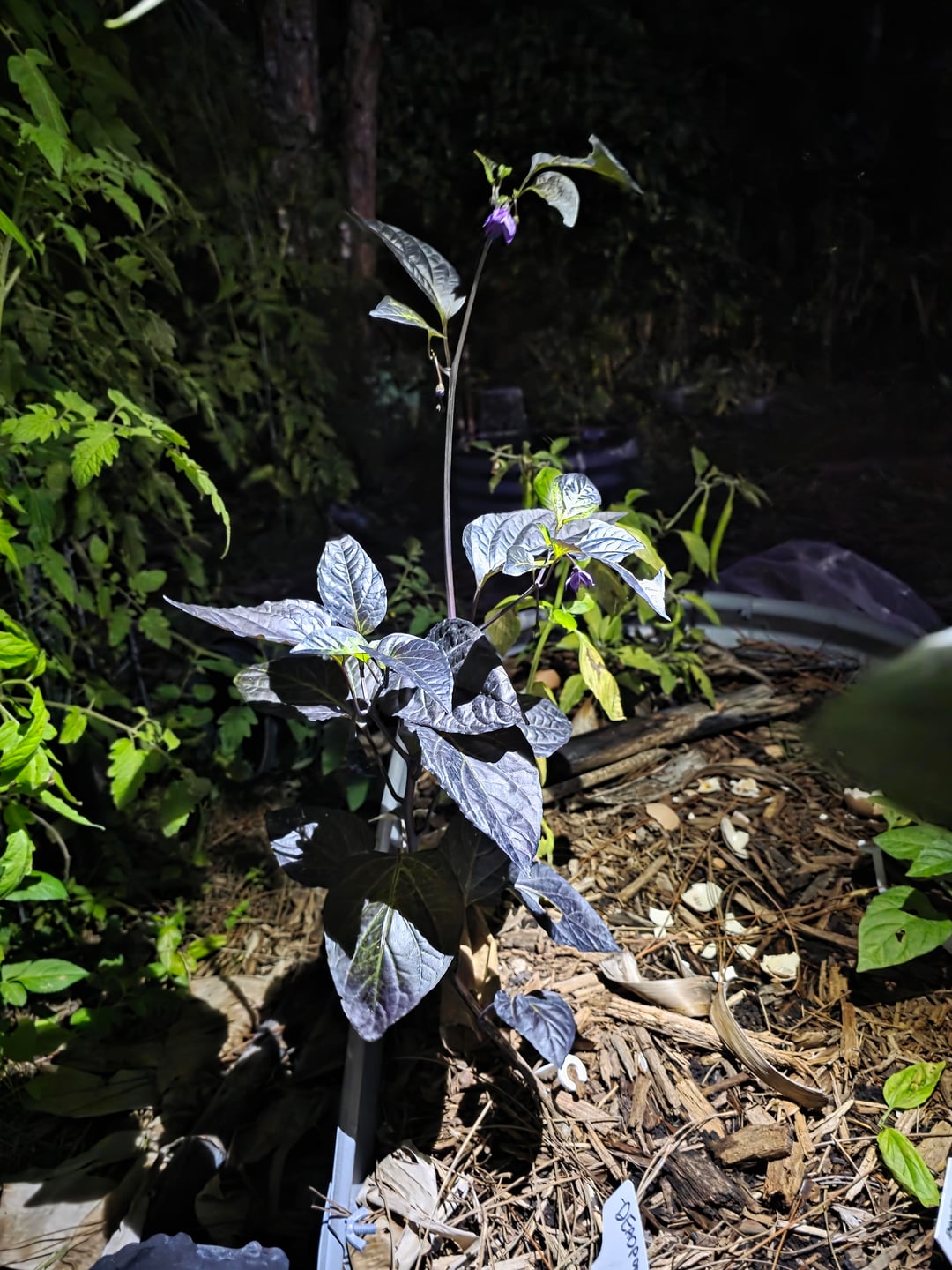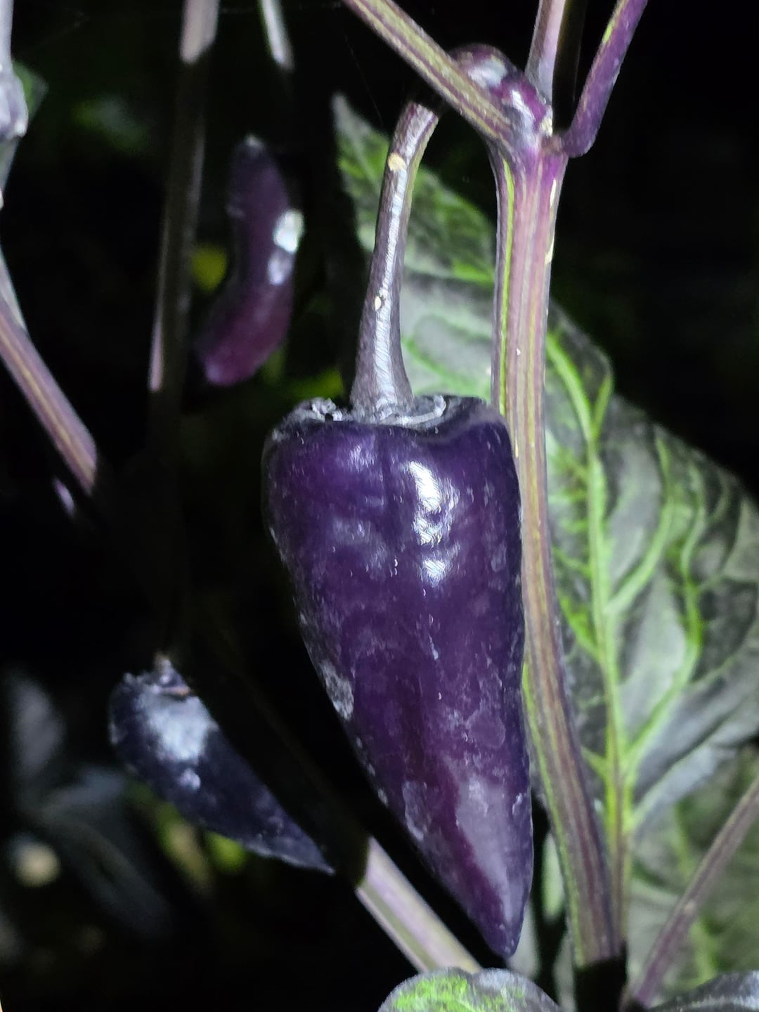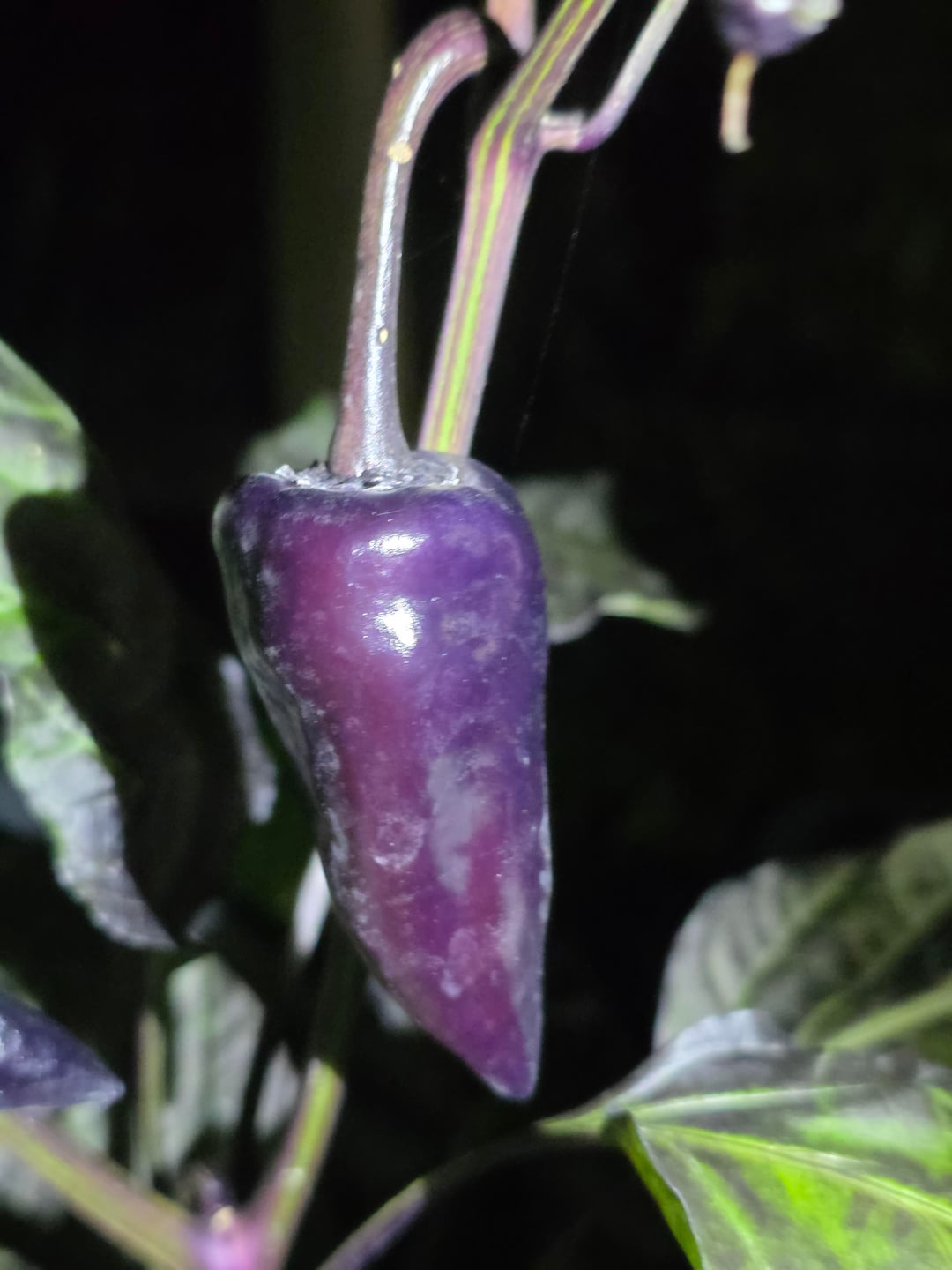 He said none of his peppers are purple like this. The leaves are purple/black and green. How spicy is it? This one makes me a little nervous to try.