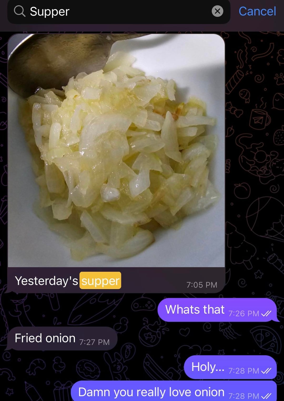 Hey listen. All these are crimes except the sautéed onions. They did nothing wrong and if I want a bowl of yummy onions for dinner thats my business!