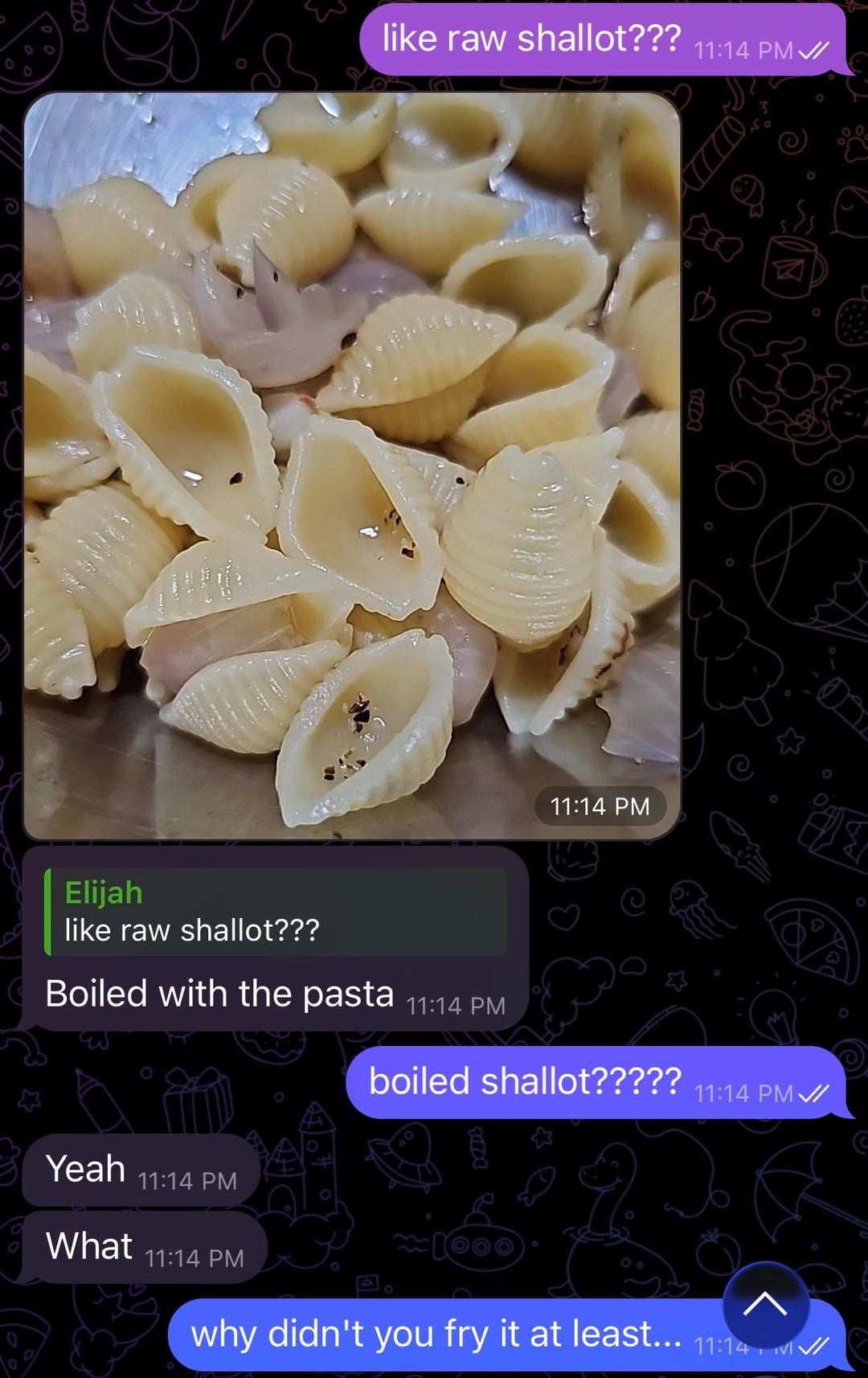 And sorry, they boiled shallots for pasta but fried onions on their own??????