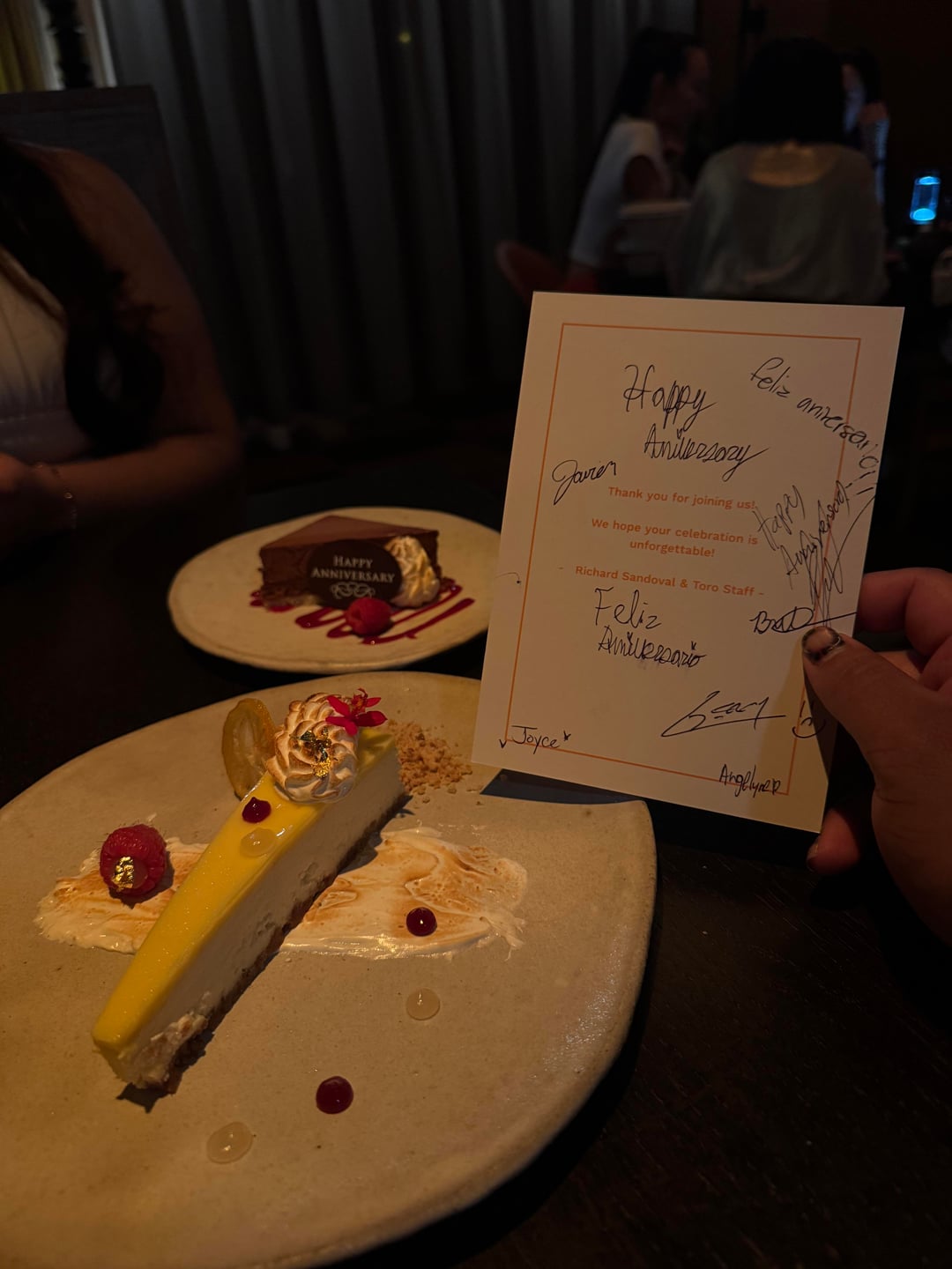 Celebrated our anniversary at Toro this year and was amazed by the service and food.