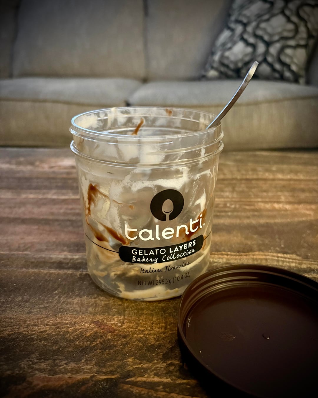 After successfully getting the cap off without cracking it, started with a couple of scoops. Then just finished the whole thing. I suppose you've got to like tiramisu and coffee ice cream to love this, but if you do, it's really great.