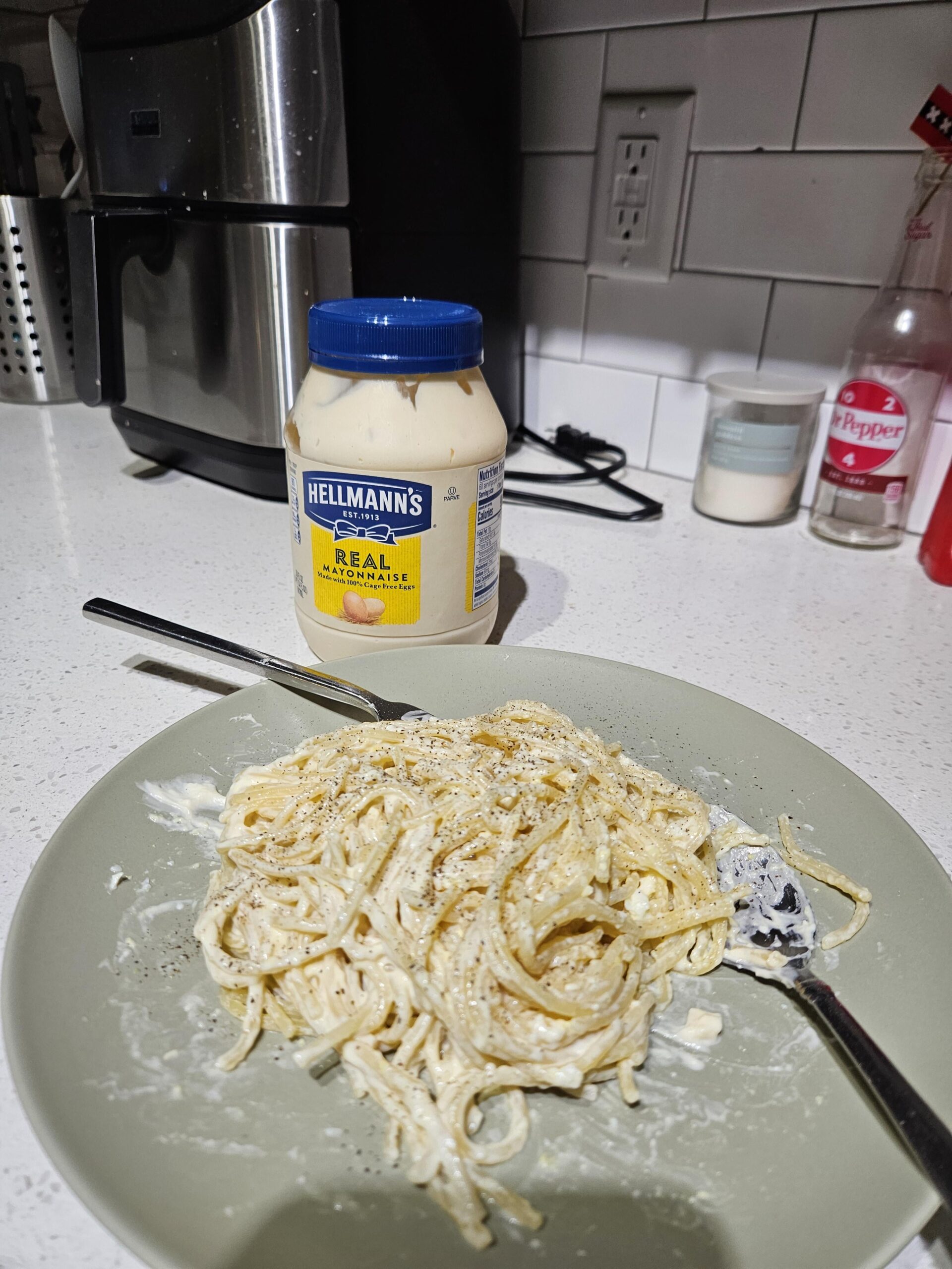 I made my favorite dish I used to make when I was poor: Mayo Spaghetti