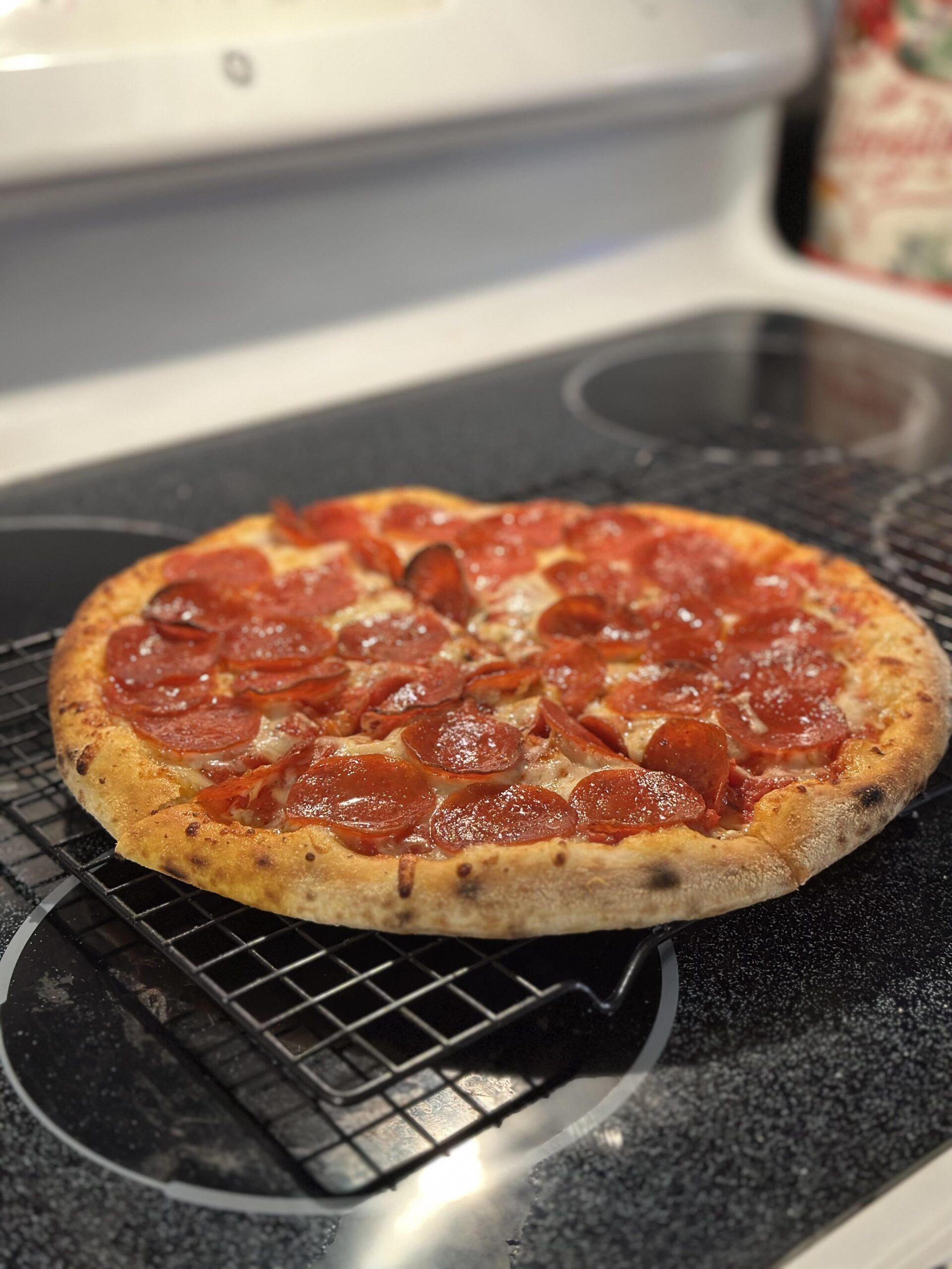 Your entire pie is only about the size of a standard New York Slice which is not much. It’s like ordering from the local slice shop in Queens, recrisped, and eaten it on the go. If your dough has been on a multiday ferment, it’s not going to bog you down.