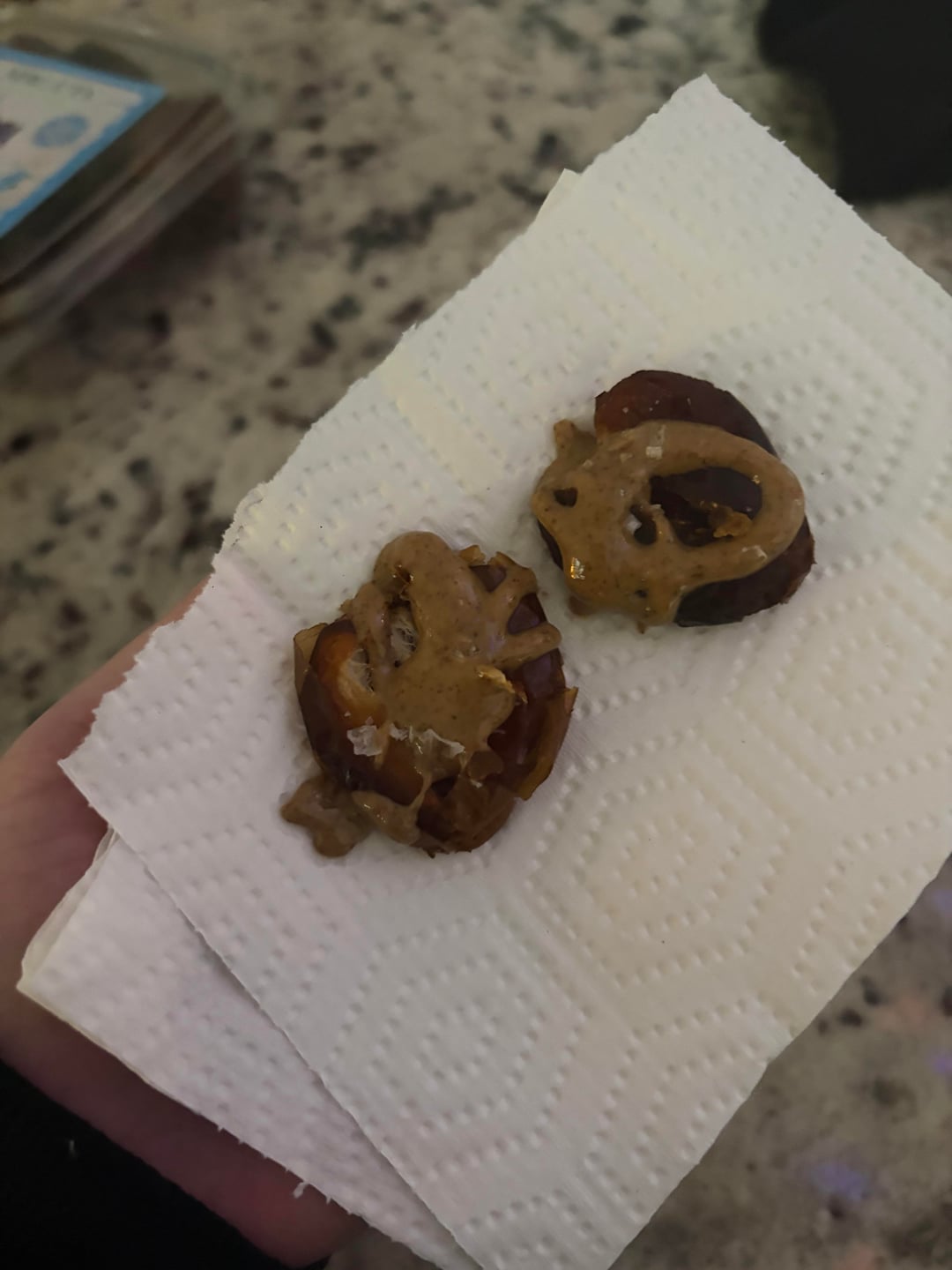Medjool dates with nuttzo and flakey salt: 65cal-ish. It’s 40g dates, 4g nuttzo and salt.