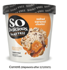 | So Delicious Dairy Free® Salted Caramel Cluster Non-Dairy Frozen Dessert pints | 136603 | 744473476138 | Before 08 Aug 2027 |