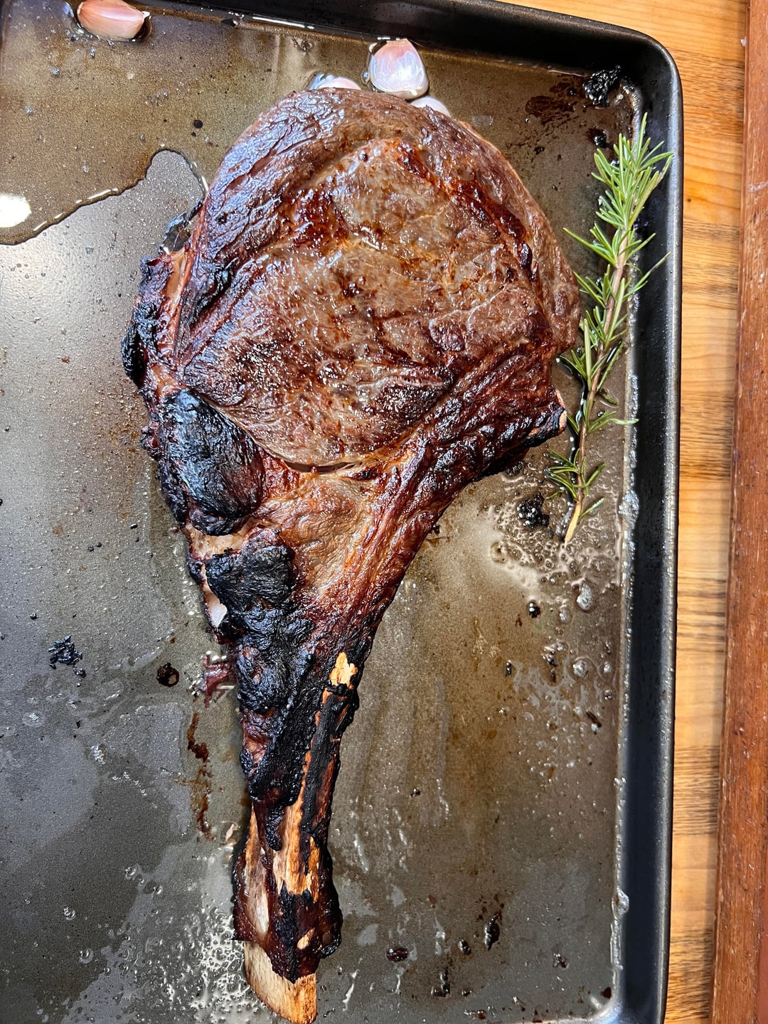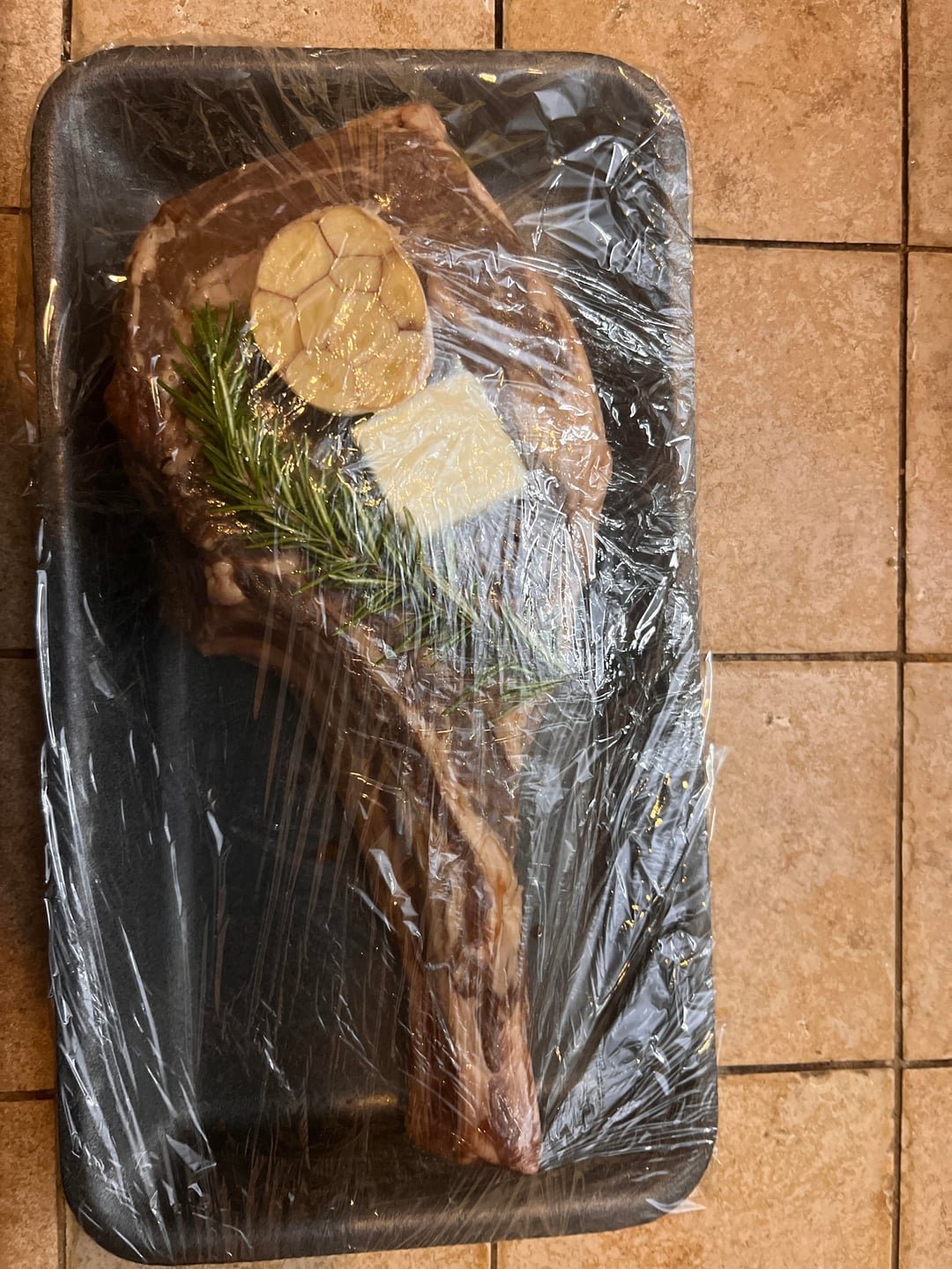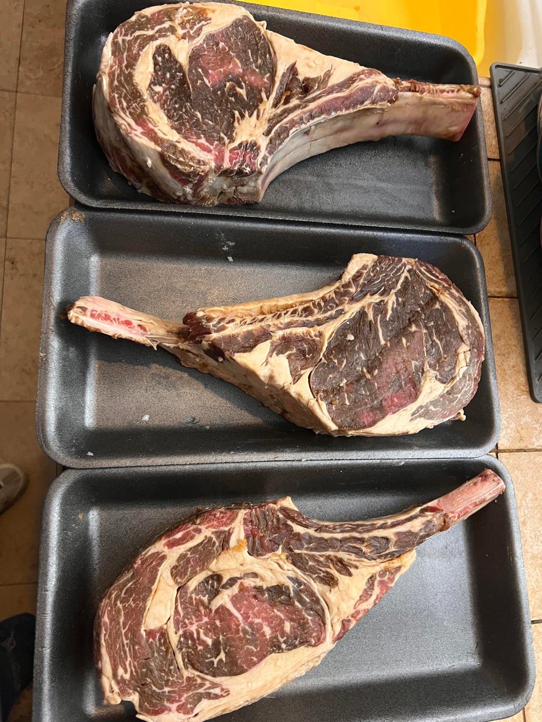 Tomahawks at 125F for 3 hours. Marinated in Koji for 24 Hrs.