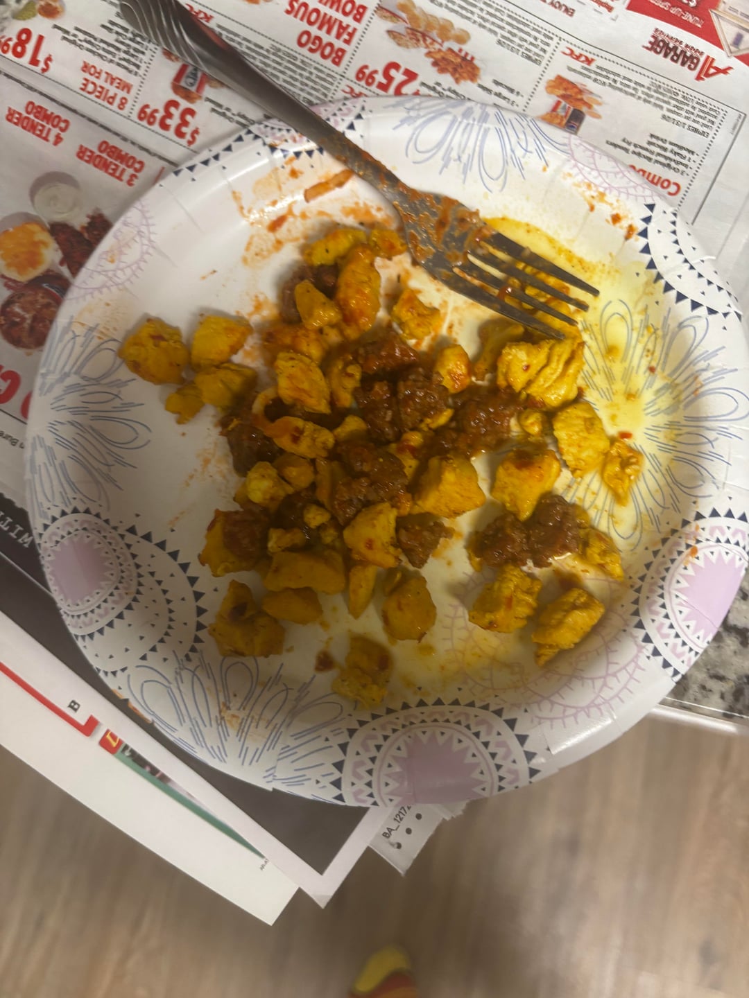 The other little pieces of meat are ground beef but I need my protein goals so bad lol so please tell me how much was in the chicken!?