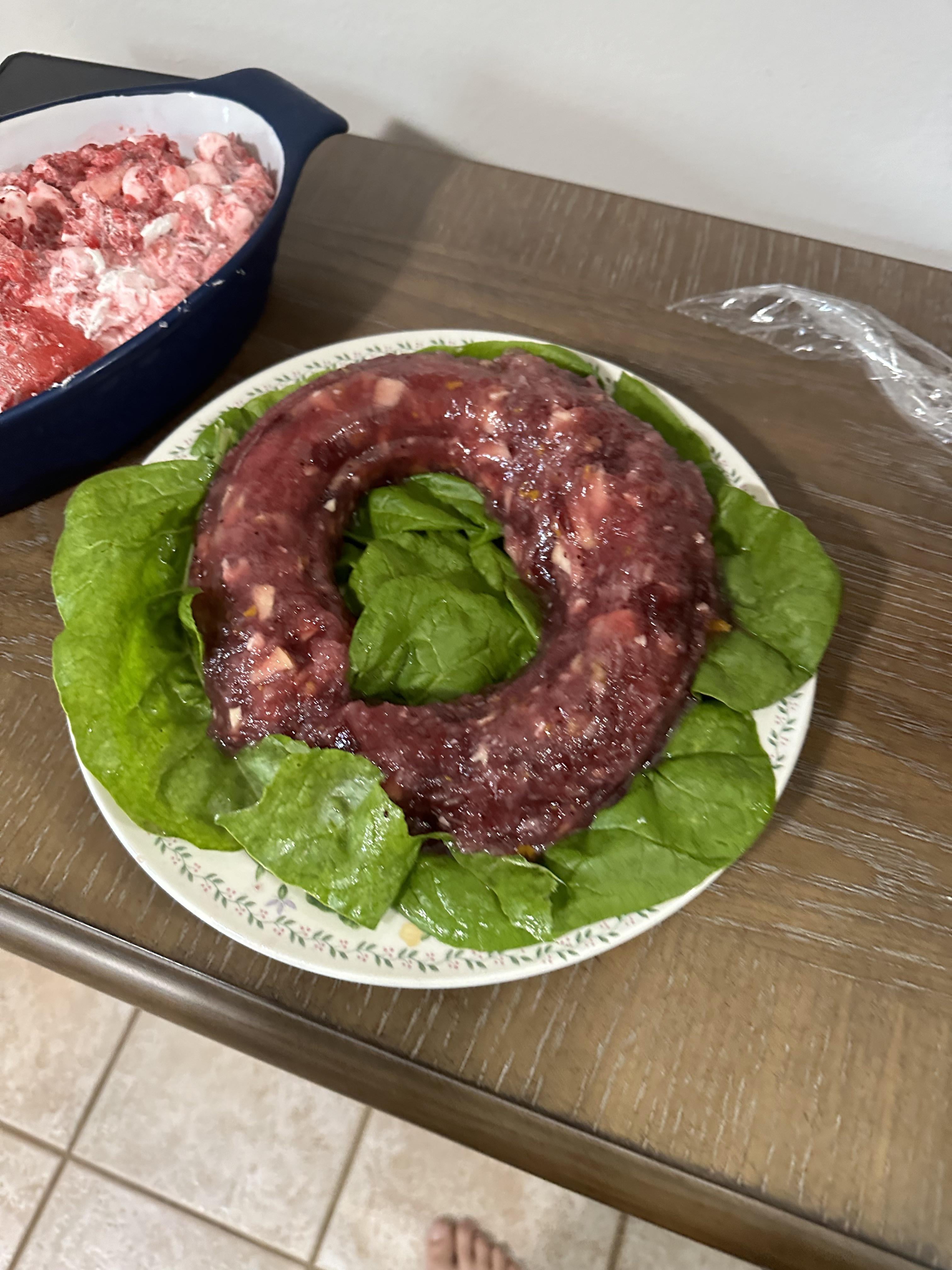Large dog hacked up a cranberry salad.