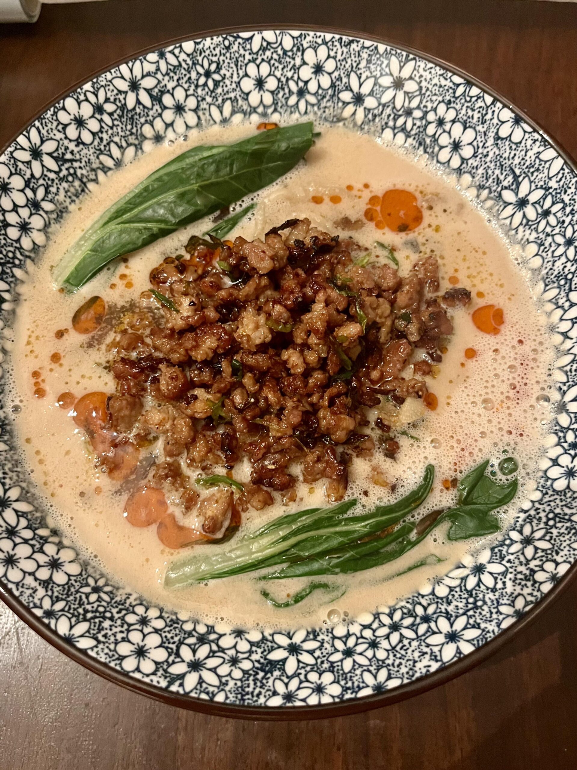 Crispy ground pork with green onion, garlic, soy sauce, mirin, and togorashiThe broth is whisked together with tahini paste, fresh ground roasted sesame, and garlic/ginger infused duck fatby minijabrontoad 4 Comments Fuzzy_Welcome8348 4 months ago I want to drink that broth. PASS ME A STRAW False3quivalency 4 months ago Yo this looks delicious. I hope it was very good after all your hard work to make it~ AdDear1590 4 months ago That broth looks rich. I think my blood just thickened a little. Still looks delicious. I hope you enjoyed. usk_7 4 months ago Nice TanTanMen!