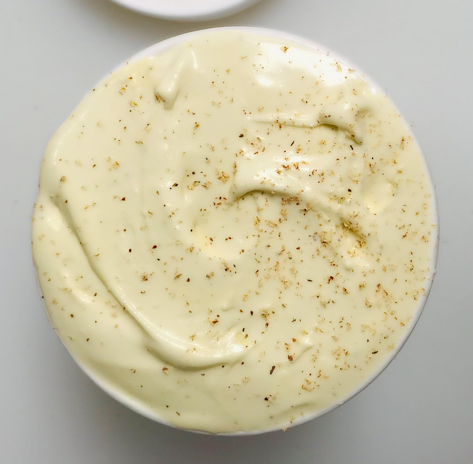 Simple perfection. Made five yolks (per quart), freshly grated nutmeg and a couple of tablespoons of brandy, for good measure. ❤️