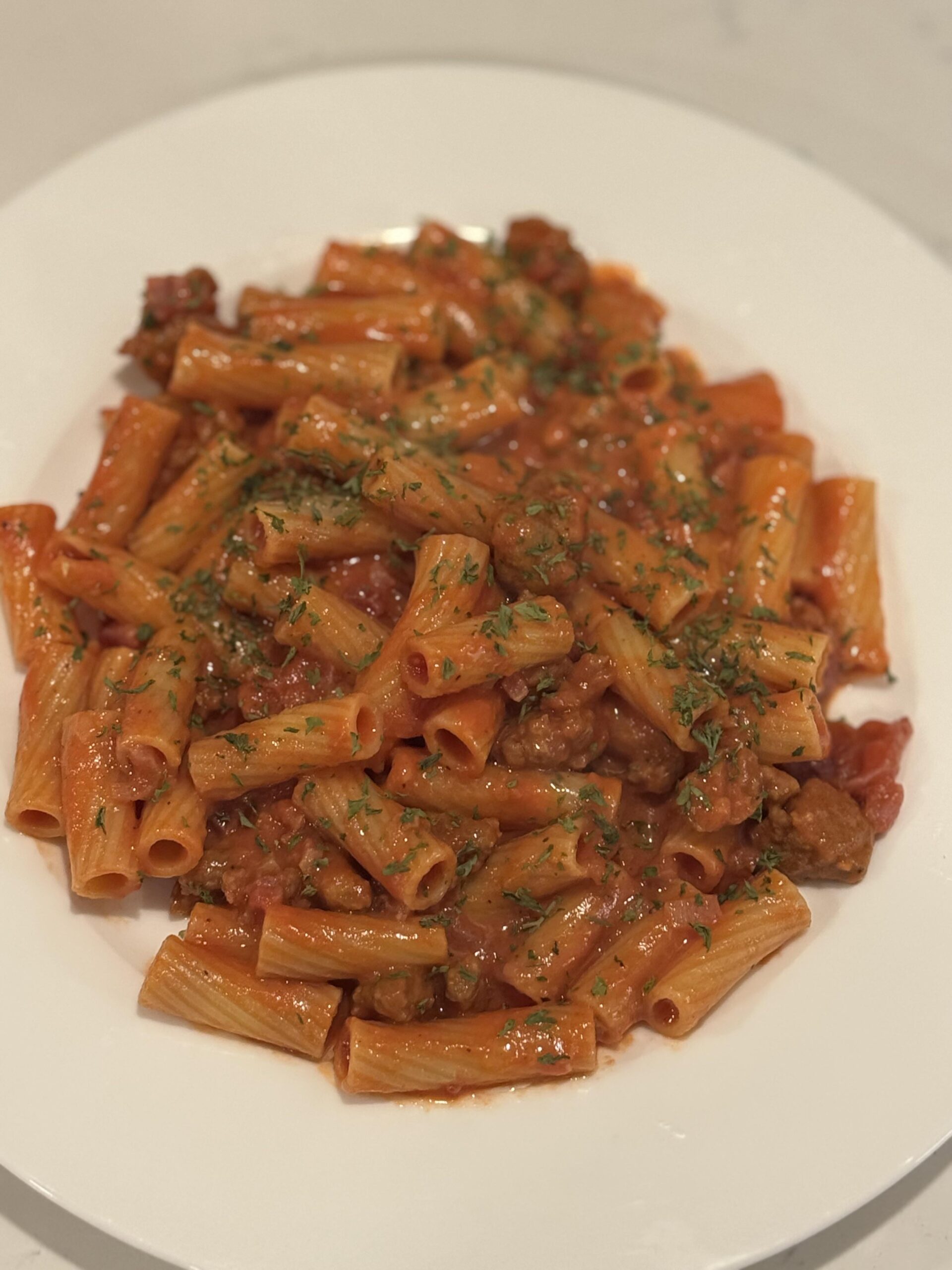 Instead of using chilis like in a traditional amatriciana I just used passata and hot Italian sausage to go with the guanciale! If you’re a fan of roman sauces i HIGHLY recommend!by Additional_mix9945 1 Comment K-Oz_Kitty 16 hours ago Whatever zozzona is, I want more 🤤