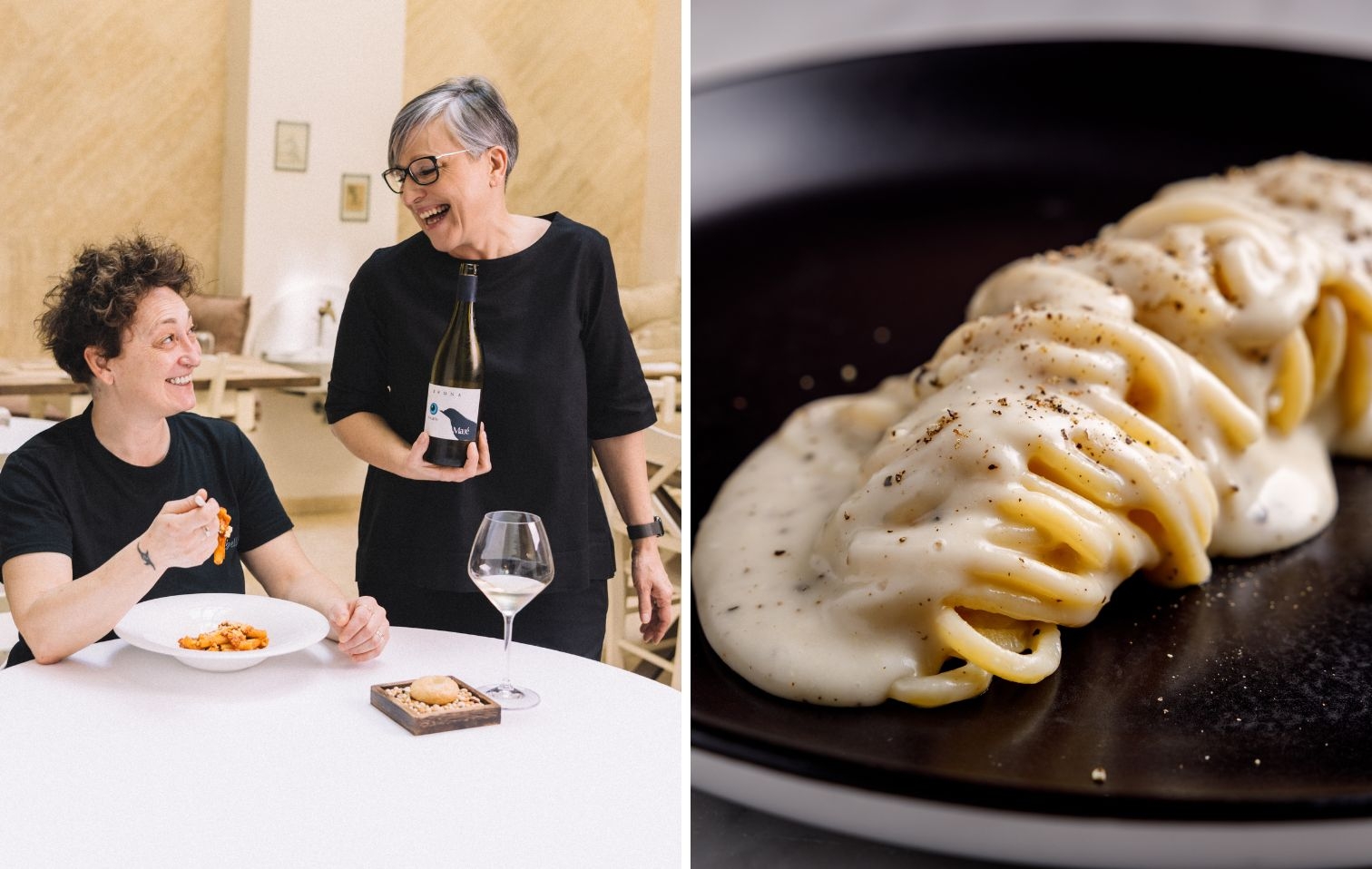Francesca Ciucci grew up in her family’s fraschetta in Rome, absorbing the flavors and ingredients of Roman tradition in the best possible way. Mirka Guberti studied agronomy in Burgundy and was captivated by Josko Gravner’s philosophy during her time at the renowned winery. She eventually devoted herself to the world of dining alongside illustrious names in the restaurant industry such as Cristina Bowerman and Gianfranco Pascucci. “Since I arrived in Lazio 15 years ago, the region has inspired me greatly,” says the maître d’, thus “justifying” the 30 labels from the region on the wine list.