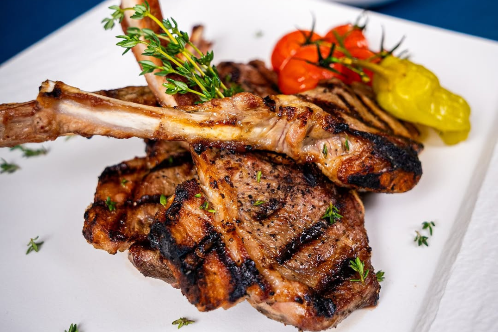 Some of the highlights of the menu include Octopus served on creamy fava with pomegranate seeds and Calamari Gemisto, where the calamari is stuffed with a rich cheese filling. Plus, the restaurant has a Petrossian Caviar service. There are plenty of grilled whole fish and prime beef cuts as well, giving guests a combination of rustic flavors with an elegant presentation.