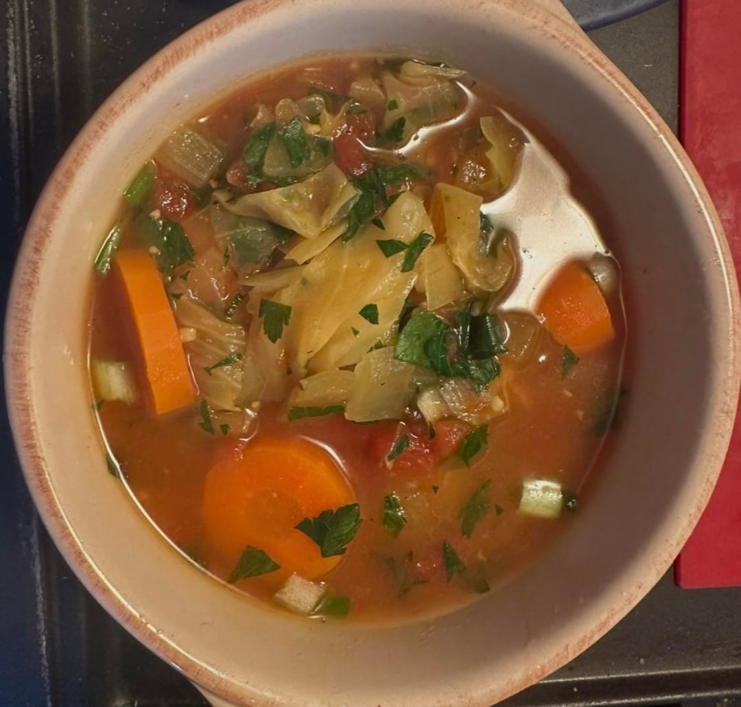 I'm pretty sure someone posted this recipe from the The Mediterranean Dish here recently, and I made it today and love it! I think the ginger, tumeric and lemon add a zing and brightness that's missing from other cabbage soup recipes. Also, while parsley is an oft-maligned herb, I have really began to embrace it and find it adds a fresh, flavorful quality to so many things.