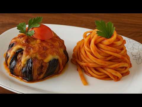 Welcome back to our channel! Today we’re making a royal-style Turkish eggplant kebab — Zade Kebab Slice 3 eggplants into long thin strips Place on the baking tray 3 tbsp olive oil, 1 tsp paprika Brush the mixture on both sides Bake at 180°C for 20 minutes 1 red bell pepper 1 green pepper 1 potato 1 tomato 1 onion 2 tbsp vegetable oil Fry the potatoes 2 tbsp olive oil Add the onions and sauté briefly 2 garlic cloves (crushed) Add the green pepper and red pepper 500 g minced meat 1 tsp tomato paste, 1 tsp pepper paste Add the tomato 1/2 tsp paprika,1/2 tsp black pepper,1/2 tsp cumin,1/2 tsp salt 1 cup hot water Cover and cook for 10 minutes Place the eggplants in the bowl 1 slice of fried potato the prepared minced meat filling mozzarella (grated) Flip the bowls onto the baking tray Finally, add mozzarella on top Bake at 180°C until the top is golden let’s prepare the pasta, 2 tbsp olive oil 1 small onion 2 garlic cloves 1 tbsp tomato paste 1 cups tomato sauce 1/2 tsp salt, 1/2 tsp black pepper, 1/2 tsp sugar, 1/2 tsp chili flakes, 1/2 tsp paprika, 1/2 tsp thyme 1 tsp sriracha Add the cooked pasta and mix Serve and enjoy Thank you for watching!