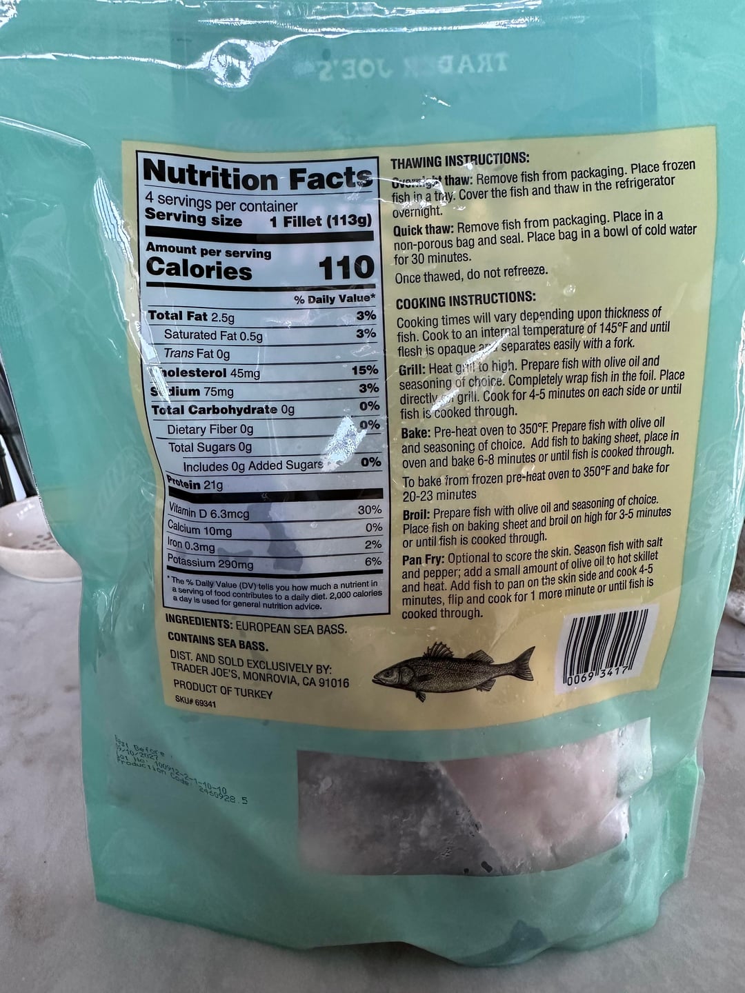 I like baking that branzino. 350 about 12 mins then broil for 3. Spritz of olive oil, lemon zest (slice after), crazy Jane, and pepper. Fresh branzino is even better, but this is great to keep on hand.