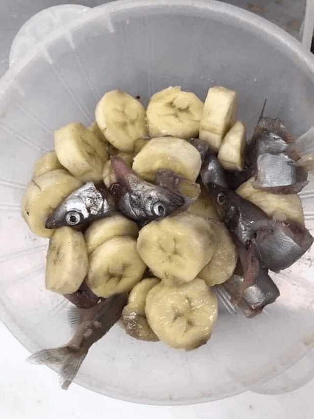 I mean, this looks like food for wildlife. I’ve fed sardines like that before to wild sea birds recuperating in a wildlife sanctuary, but the bananas are odd.