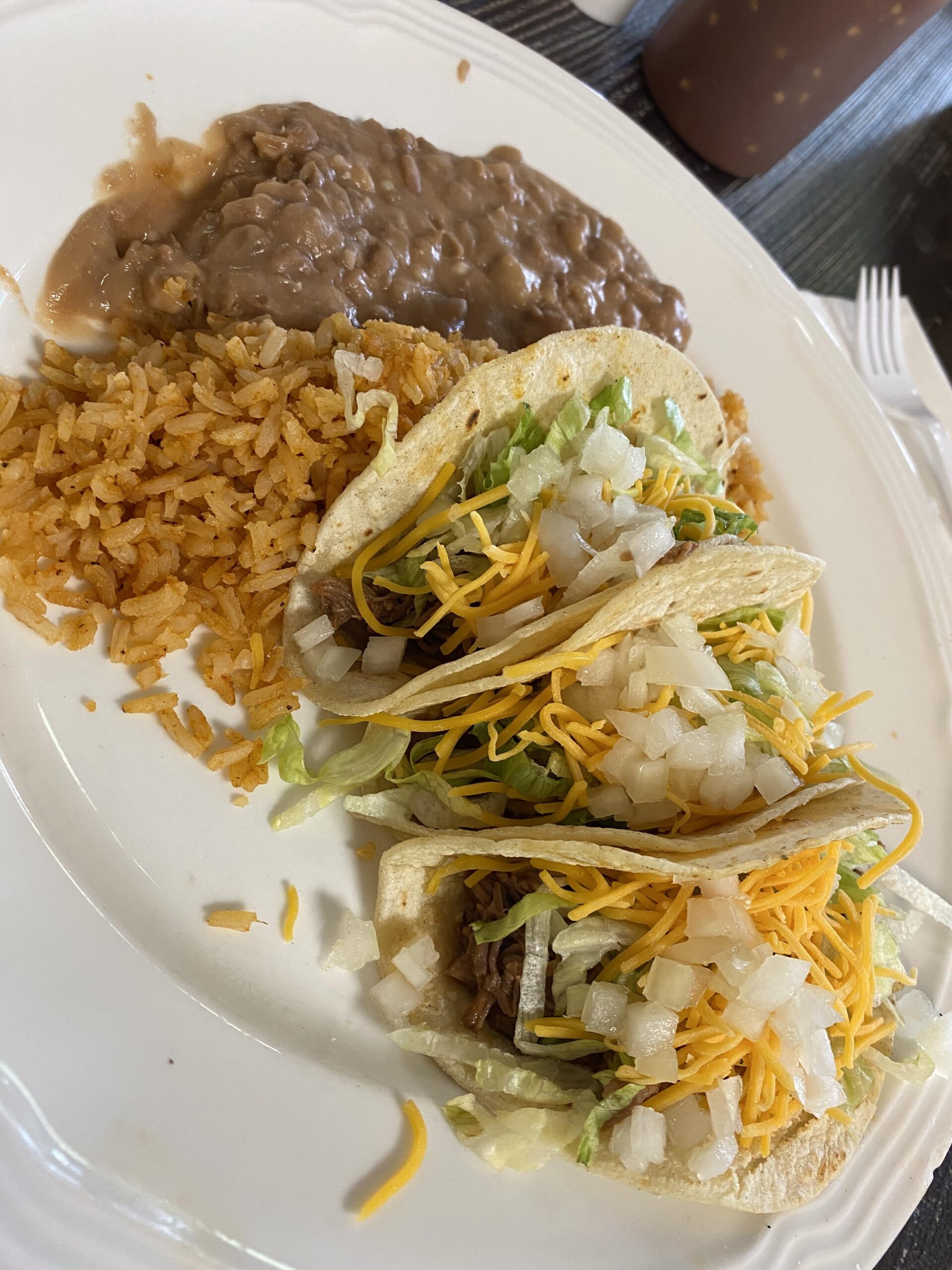 Yes I know these are not authentic Mexican tacos, despite the name of the restaurant. I found this place when I stopped to get gas off I69 in Michigan. Believe me, in there somewhere is shredded beef, they didn’t have steak. It did taste good and wasn’t expensive.