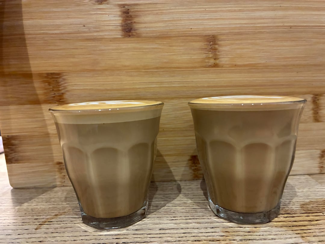 Here are two i made, the left has too much foam and is more akin to a small latte than a cortado. The right is more like what i would expect and the same foam level i would expect from a flat white.