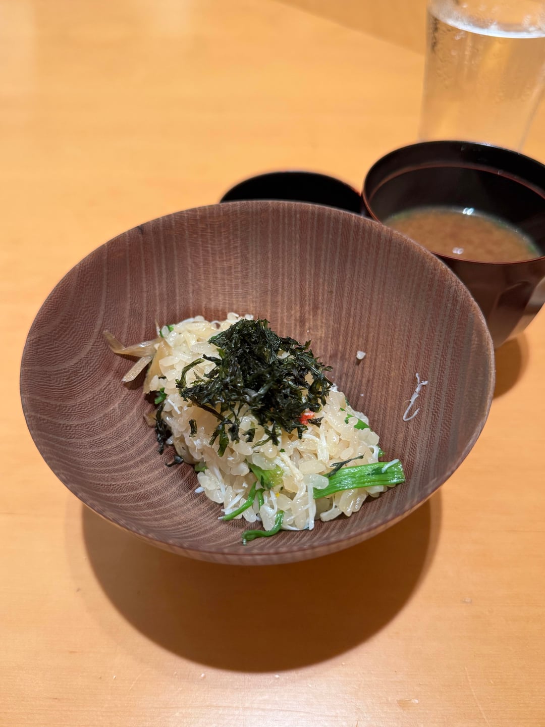 This was an ok dish overall. Presentation felt a bit underwhelming, and I would have appreciated more explanation of how each element tied into the autumn theme. Hassun is usually where seasonality really shines, and this one didn’t quite land with me.