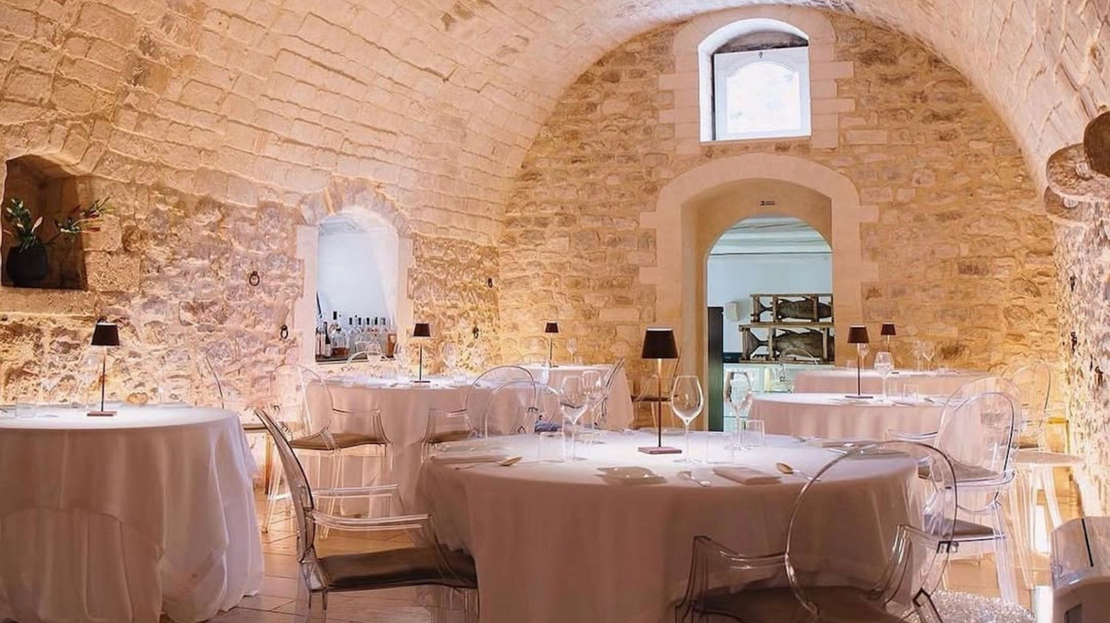 Tucked into the limestone cliffs of the hilly Ibla district in the historic Sicilian town of Ragusa, Locanda Don Serafino offers one of the most remarkable restaurant experiences in Italy. Part of the dining room is literally carved into the rock, and the contrast between crisp white tablecloths and dramatically illuminated stone is a sight to behold. The historic restaurant occupies the former warehouses of a local church, complete with stone masonry and vaulted arches, making a meal there feel all the more unique and extravagant.