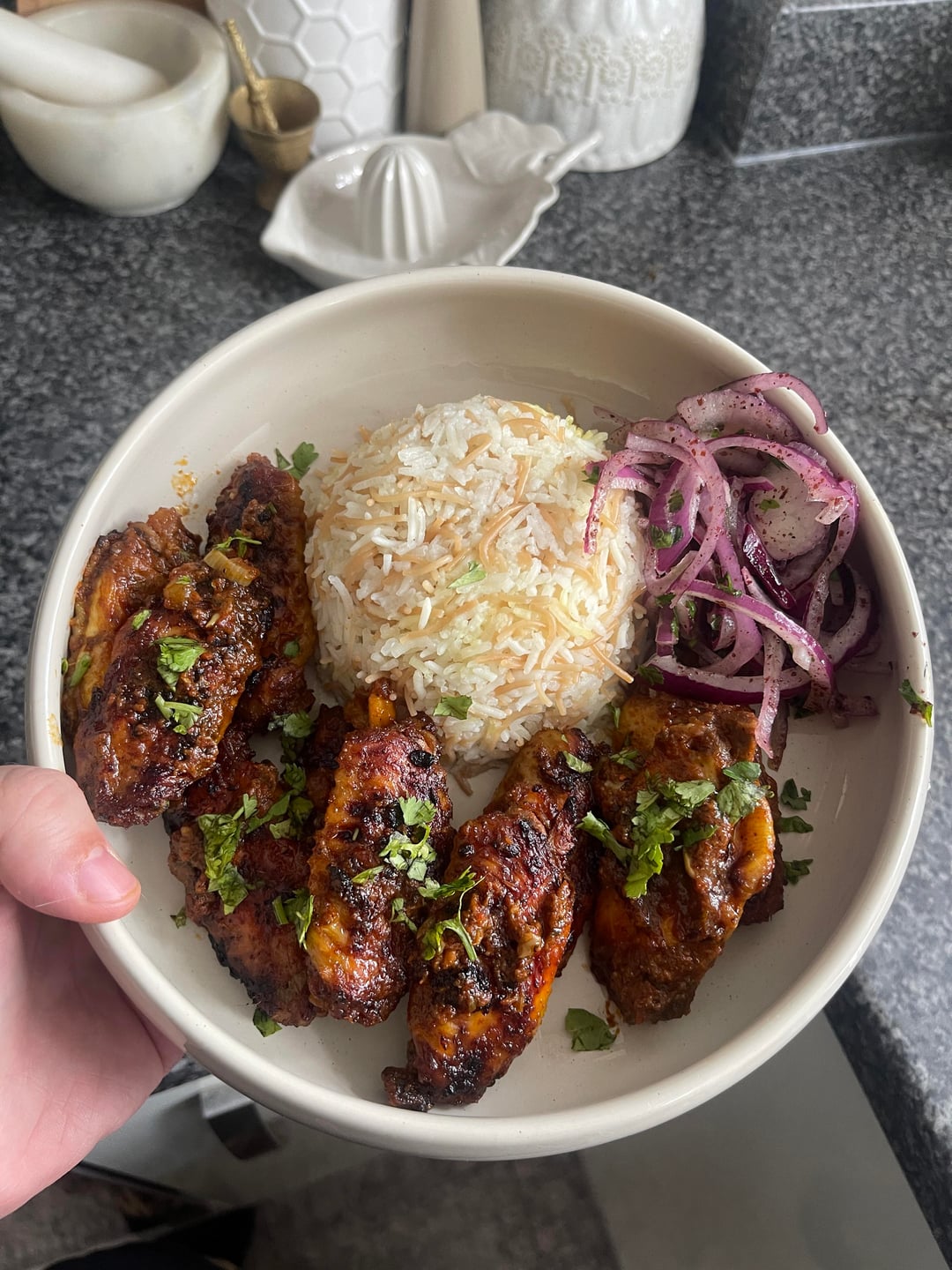 [homemade] Smokey Turkish wings one of my fave mealsby cherrydrop167 11 Comments thecloaked1 17 hours ago Share your recipe! starryyyyysoul 17 hours ago looks so good east4thstreet 17 hours ago What makes it Turkish please? Those look fantastic! Sammie_cuk2010 17 hours ago Teach us the recipe! Don’t gatekeep.Pleaseee!🙏 crazygrove 17 hours ago It’s 9:30 am where u am right now and I’d totally have this for breakfast No-Pie-2581 17 hours ago Drop the recipe! We need it! theSavageGypsy 17 hours ago Definitely NEED the recipe! That looks amazing! melekdegil 16 hours ago Loving the sumac onions on the side! erbckr 16 hours ago That rice with vermicelli AKA -tel sehriyeli pilav- explains lot :)) enjoy looks delicious. Affectionate_Chia 16 hours ago That looks really good. JD_tubeguy 15 hours ago That looks great if only I could grill. City apt dweller.