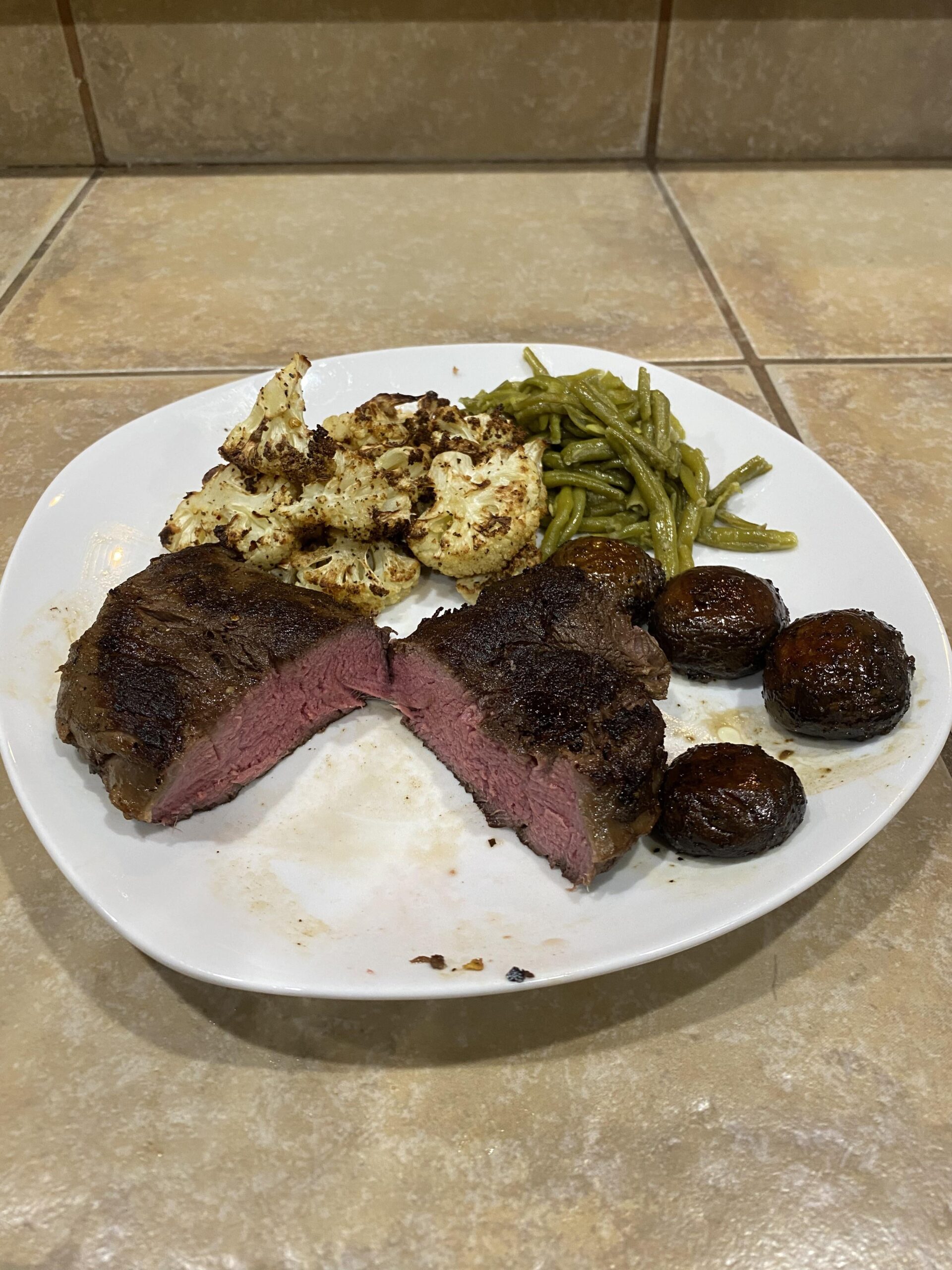 132 degrees for 4 hours from frozen. Finished with ghee in cast iron.