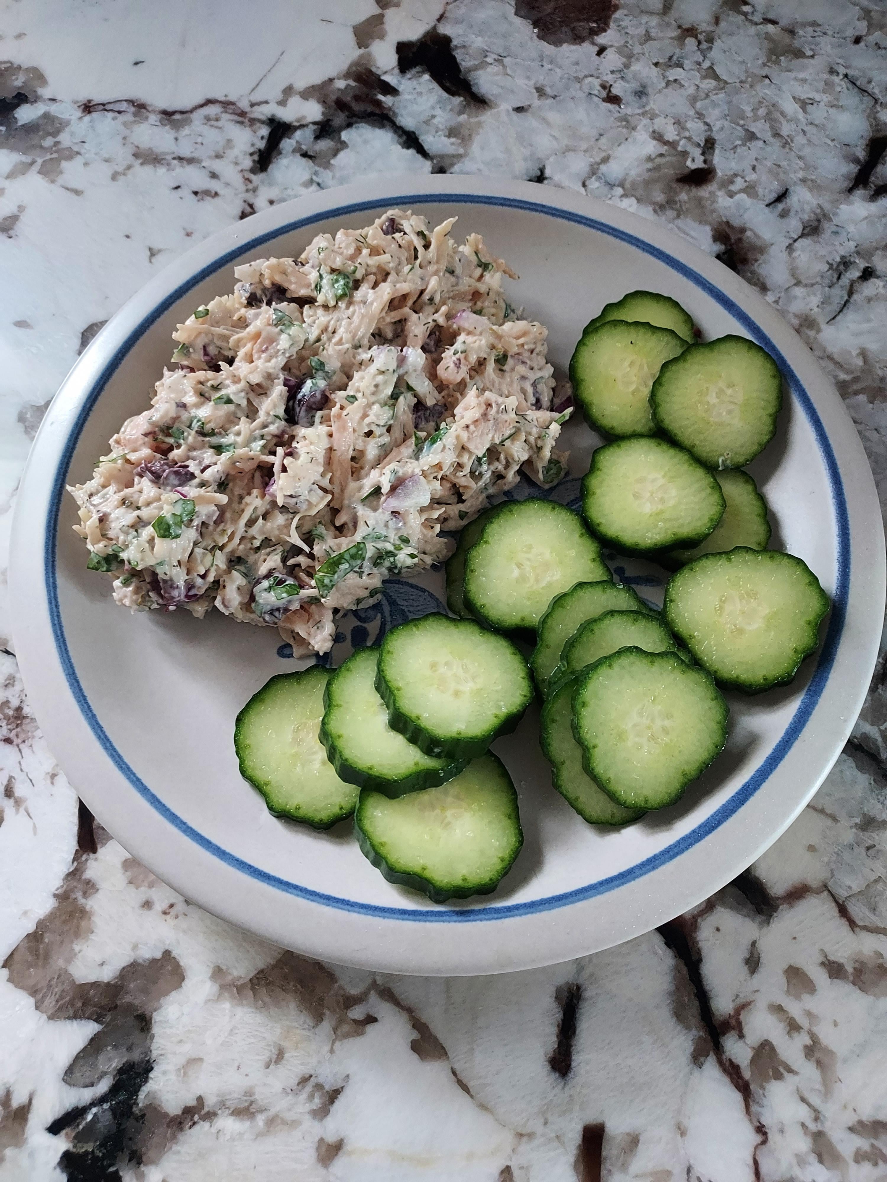 This is my lunch today. Something i just thought of. Its Costco canned chicken, chopped kalamata olives, diced red onion, chopped parsley, chosen mayo, dill, oregano, salt and pepper. I scoop it with sliced cucumbers. Delicious! by Didthatyesterday2 2 Comments Fuzzy_Welcome8348 4 weeks ago Looks simple and delightful! 😊 Guacamole_Water 4 weeks ago That looks so good!