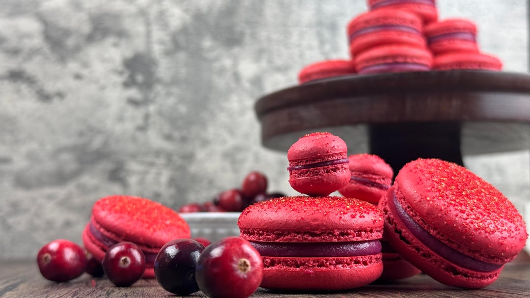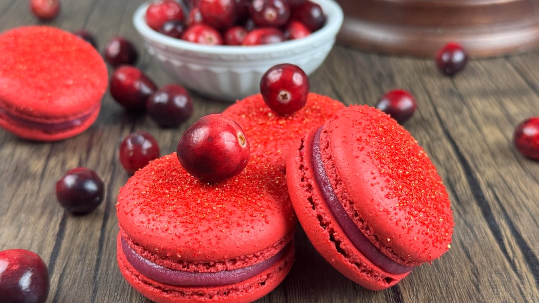 I used this recipe but I omitted the Cranberry Confit and just filled them with the Cranberry Ganache: [https://everythingmarina.com/cranberry-macarons/](https://everythingmarina.com/cranberry-macarons/)