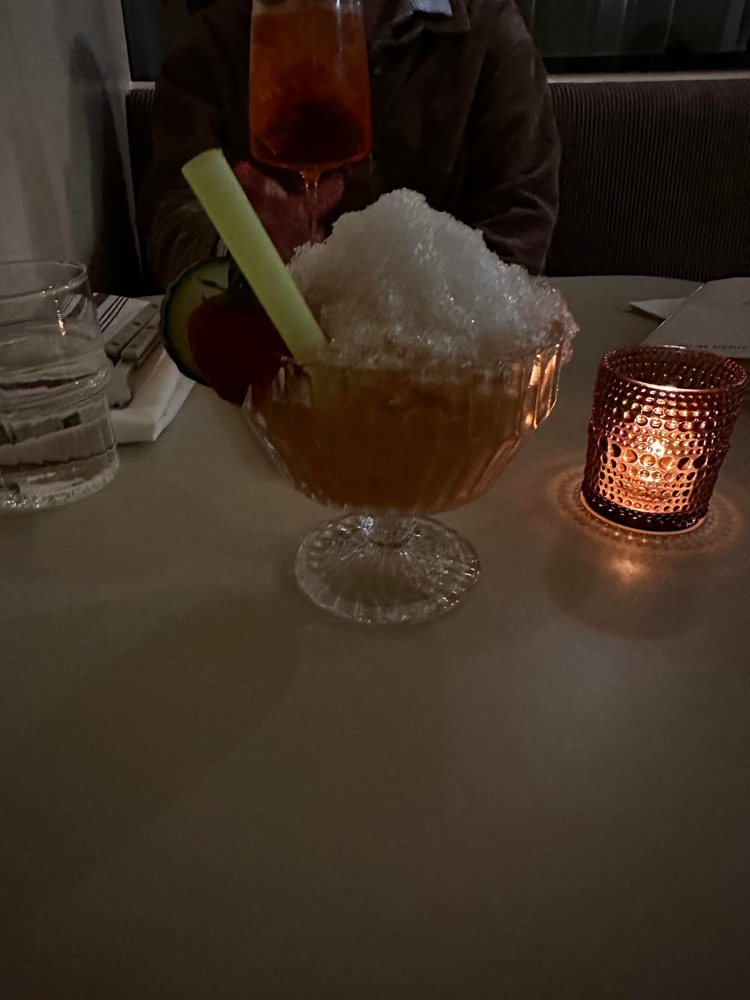 Haven’t seen this mentioned here yet and I have enjoyed going a few times since it opened – Buttercup in south loop, around the corner from Oliver’s. They serve a small menu of coffee and pastries in the morning, all of which i’ve had are good, especially the pistachio mocha and the cruffin. in the evening they have drinks and small plates, with their focus being amaro for which they have an enormous selection and helpful staff to help you make a choice if you don’t know anything about amaro like me. food does not seem like their focus in the evening so we were very pleasantly surprised with the food we tried, particularly the truffle pizzettq and the pistachio cake. sorry for the rough pictures of the dinner food – it is quite dimly lit at night