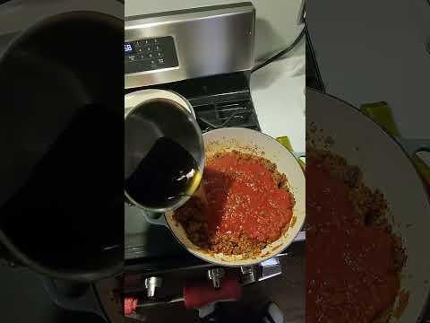 Sauté carrot, celery and onion for 15 minutes then add 2 pounds of protein. This one was venison and pork Italian sausage. Add garlic tomato paste and D. glaze with an Italian wine. Add beef bone broth, tomato sauce and crushed tomatoes and your spices. We use salt pepper, oregano, Italian herb seasoning, and red pepper flags and simmer for an hour and a half to two hours. Finish with parmesan, cream and a splash of balsamic vinegar.