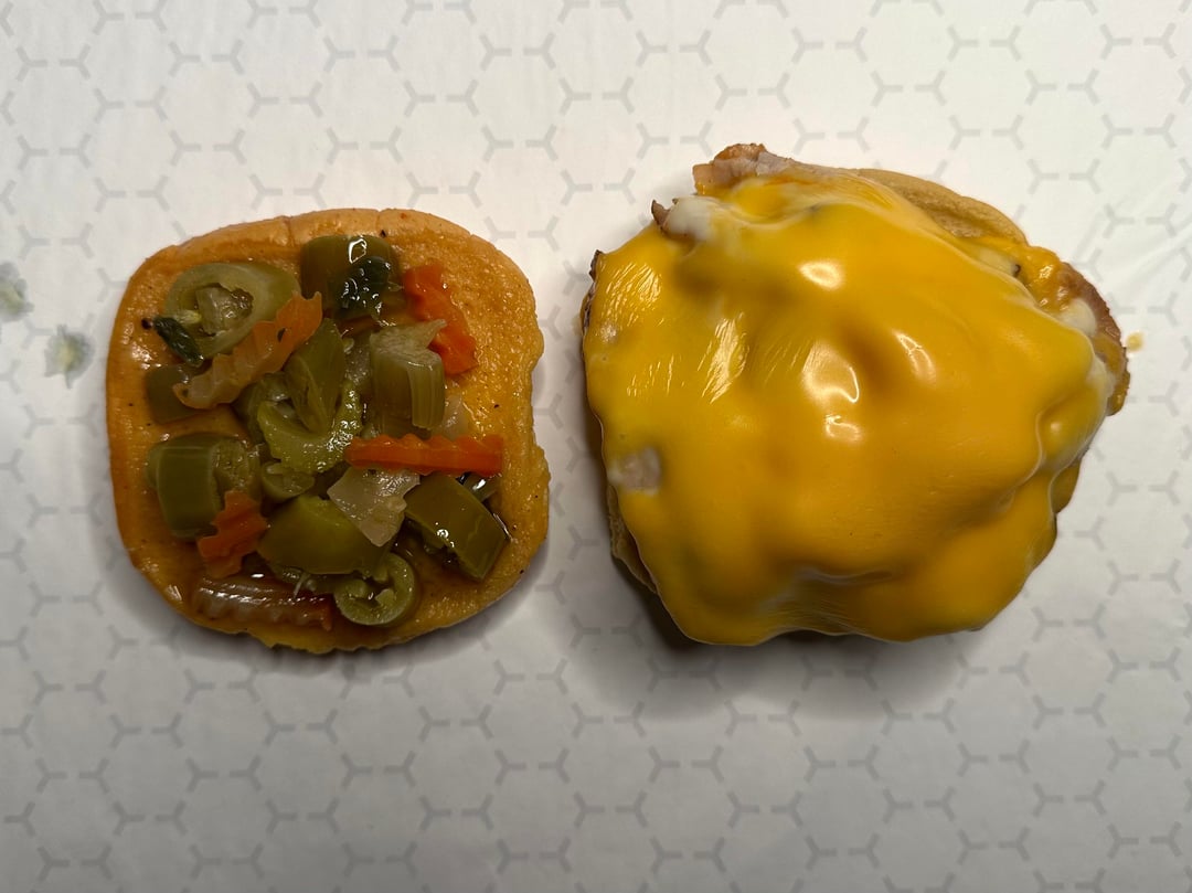 I cooked a tasty pork loin the other day and finally made the sandwich I was thinking about. So worth it! Thin sliced pork heated in a pan with a little butter and some of the pork jus, and seasoned with a little Goya Adobo. I piled up the meat and topped it with a slice of American and a slice of Muenster, then covered and melted the cheese. Placed the meat on a Martin’s potato bun, and dipped the top bun into the jus and melted cheese in the pan! Then added hot Giardiniera! Then I wrapped the sandwich for a few minutes so all the flavors could mingle and get to know each other. It was a meaty, cheesy, spicy flavor explosion!