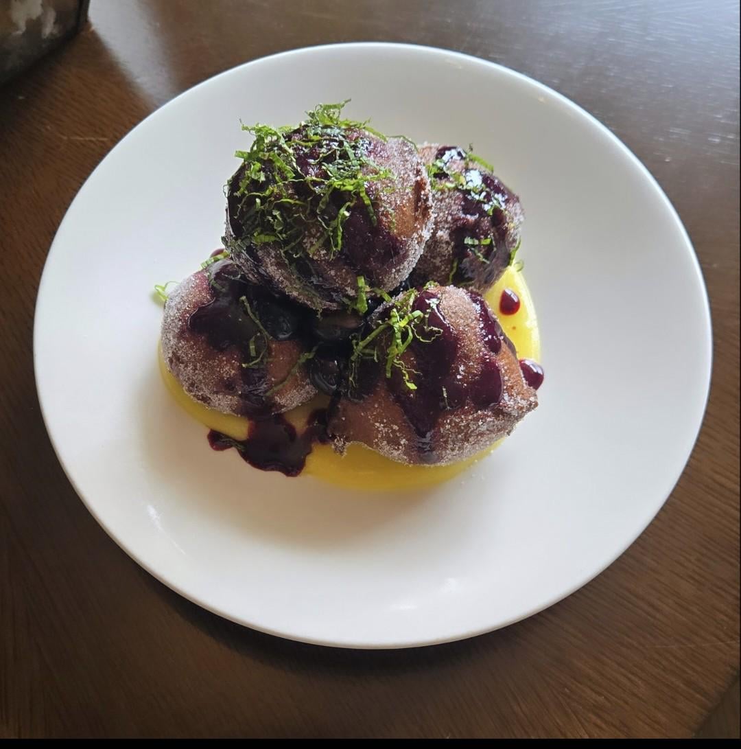 Really interested in thoughts on this. For reference $12 dessert. Blueberry ricotta donuts, lemon curd, blueberry coulis, and basil.