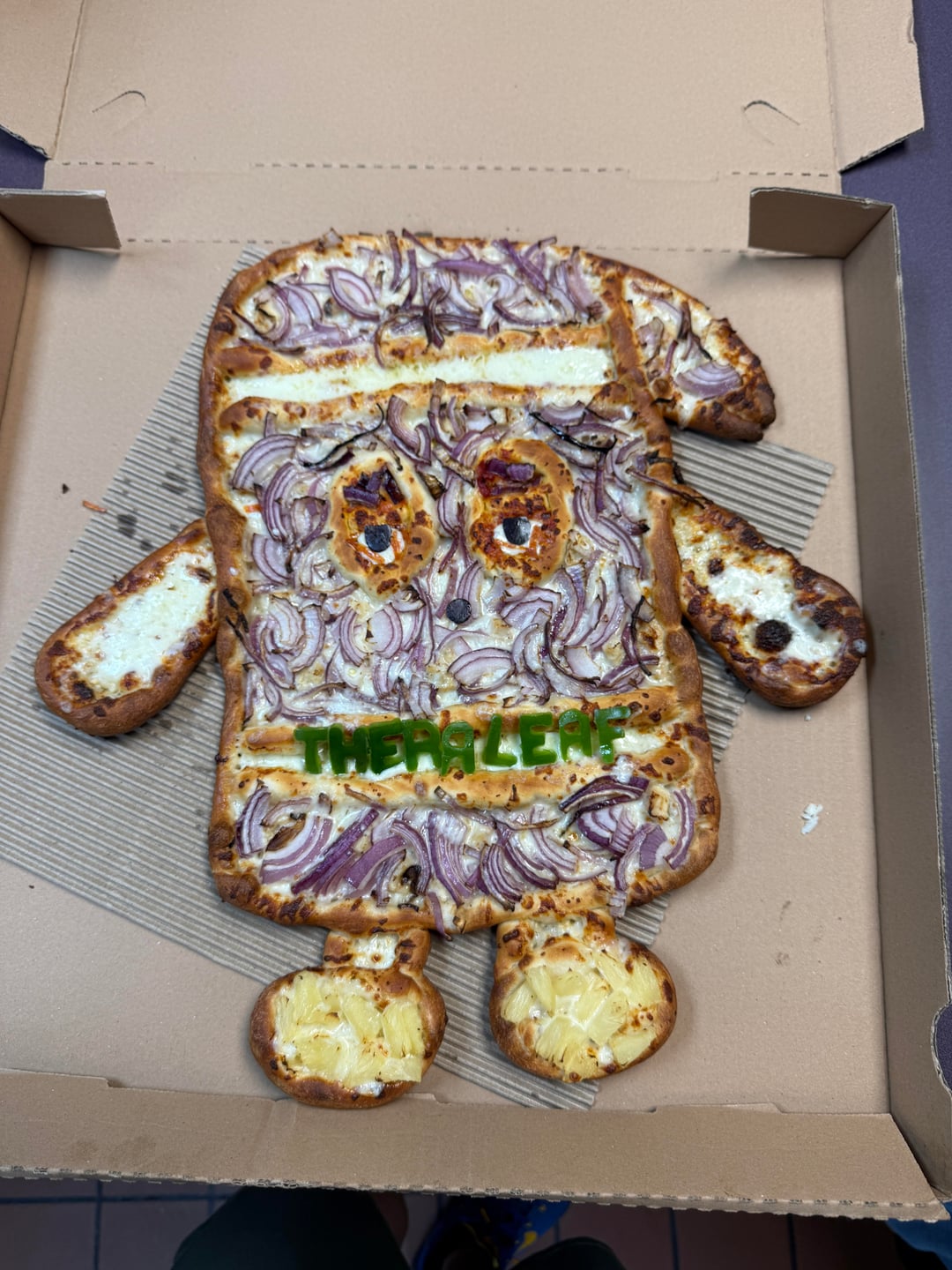 I feel like those eyes would follow me around the room😂 but that’s a pretty good onion to pizza ratio. 10/10 would eat!