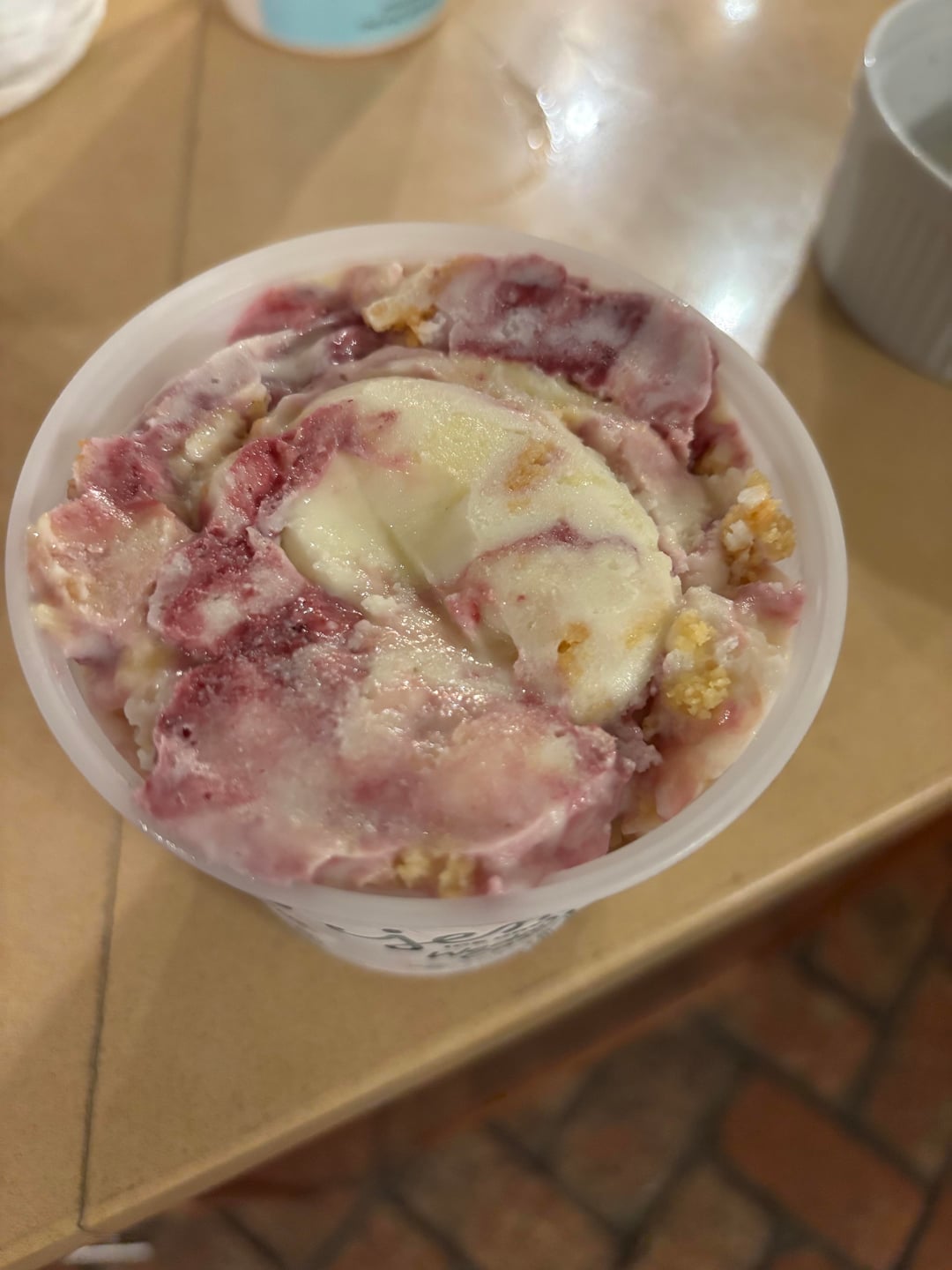 -the goat cheese and cherries (pic 4) was a sleeper pick. By far my favorite. The tang of the cheese went so well with the sweet ice cream and cherries. It was the most balanced of the 3 and if I had to get just one again this would be it.. similar cheese flavor to salt and straw’s goat cheese ice creams but the cherries were excellent.