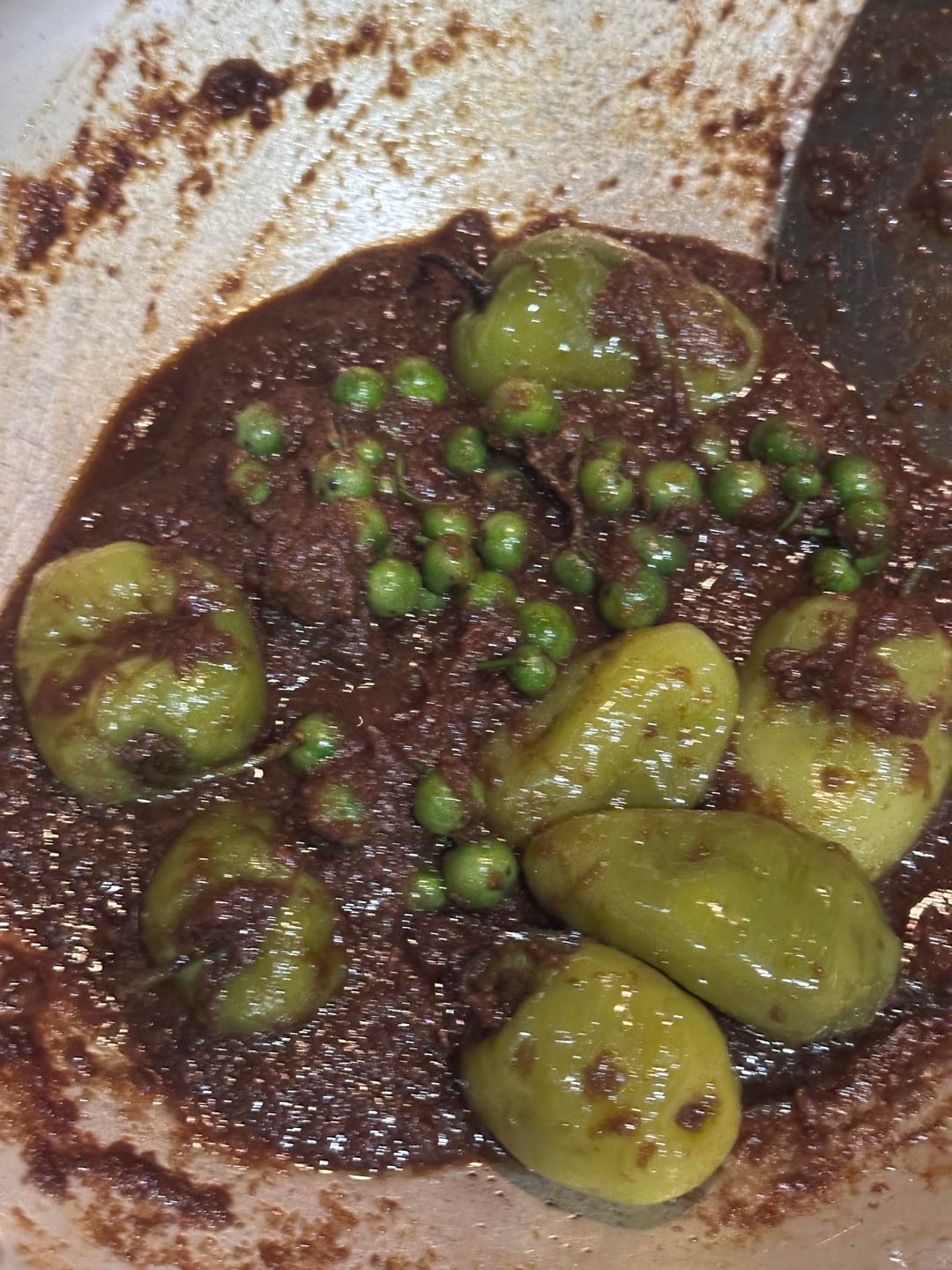 Stir gently so the chilies stay intact and are evenly coated with the spices.