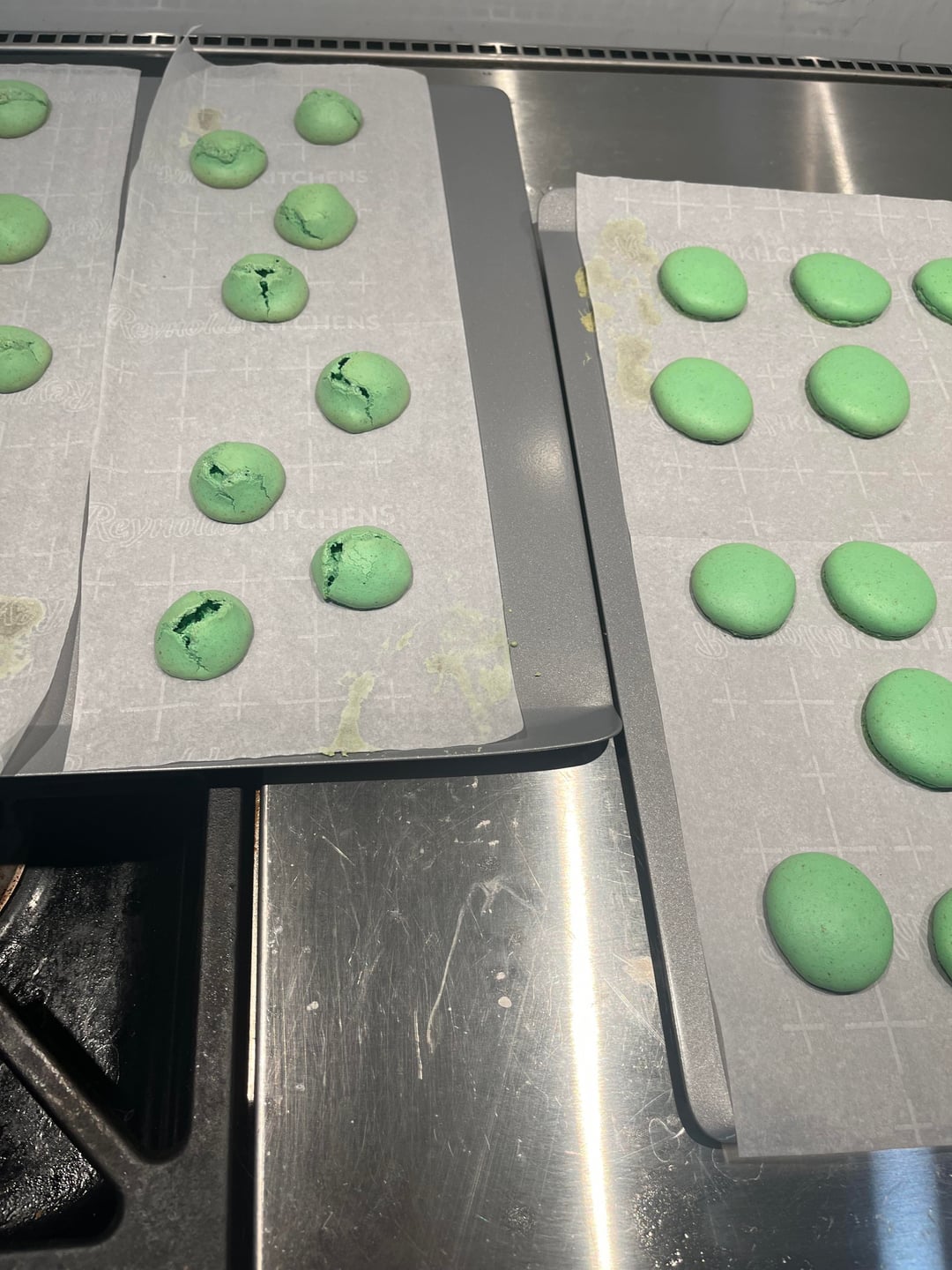 Any time make pistachio macarons they do this.Did you make this with pistachio flour or just pistachio flavoring?