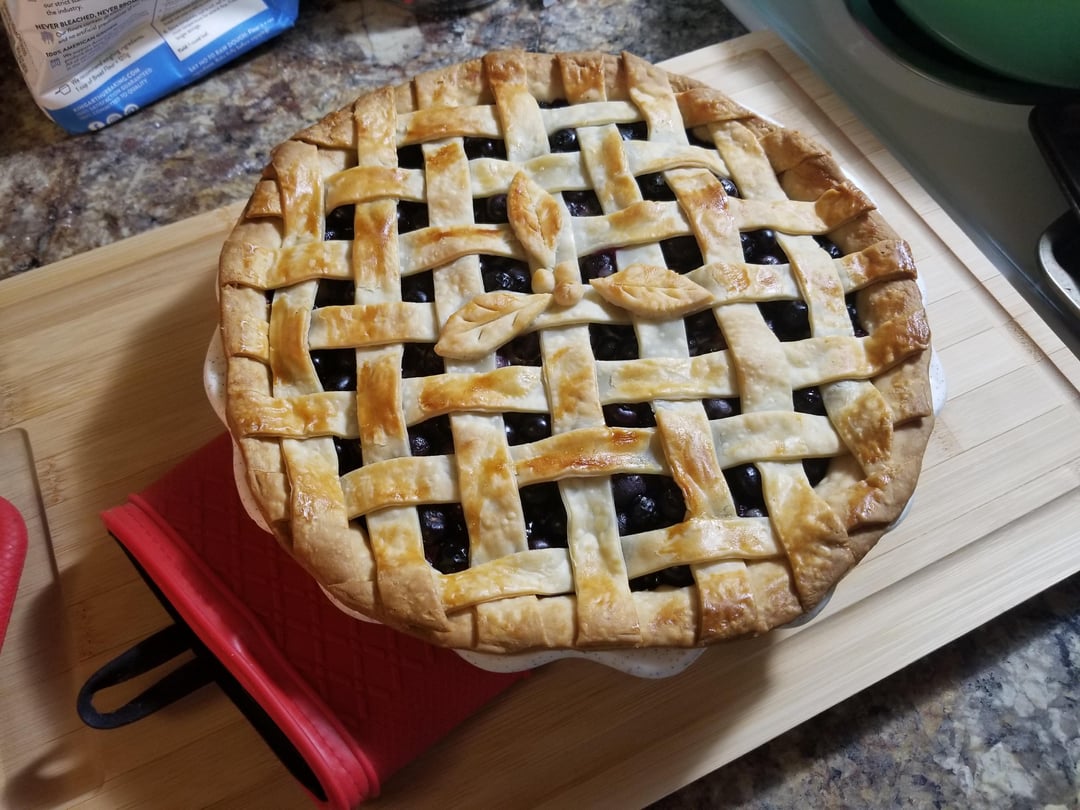It does look absolutely beautiful but we can only see half the story here. What was the condition of the blueberry filling? Did it stand tall or did it kind of ooze after it was cut? The world may never know😥 I might have rotated your pie halfway through cooking.