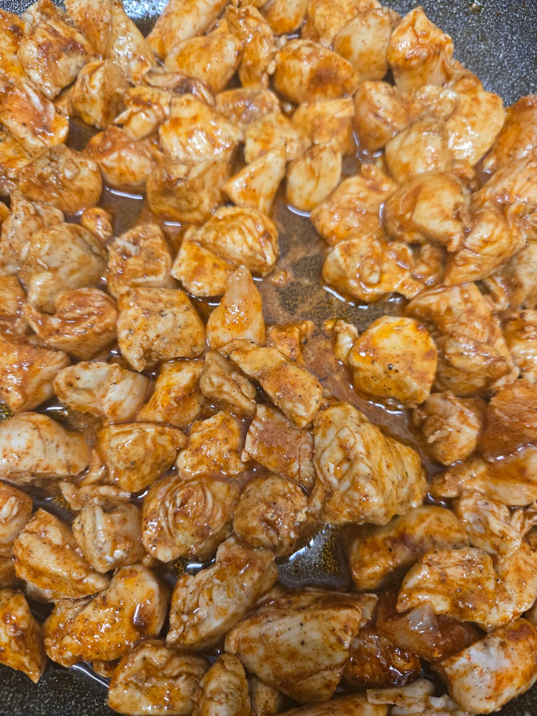 1. Add oil to a pan, dice chicken then add to the pan