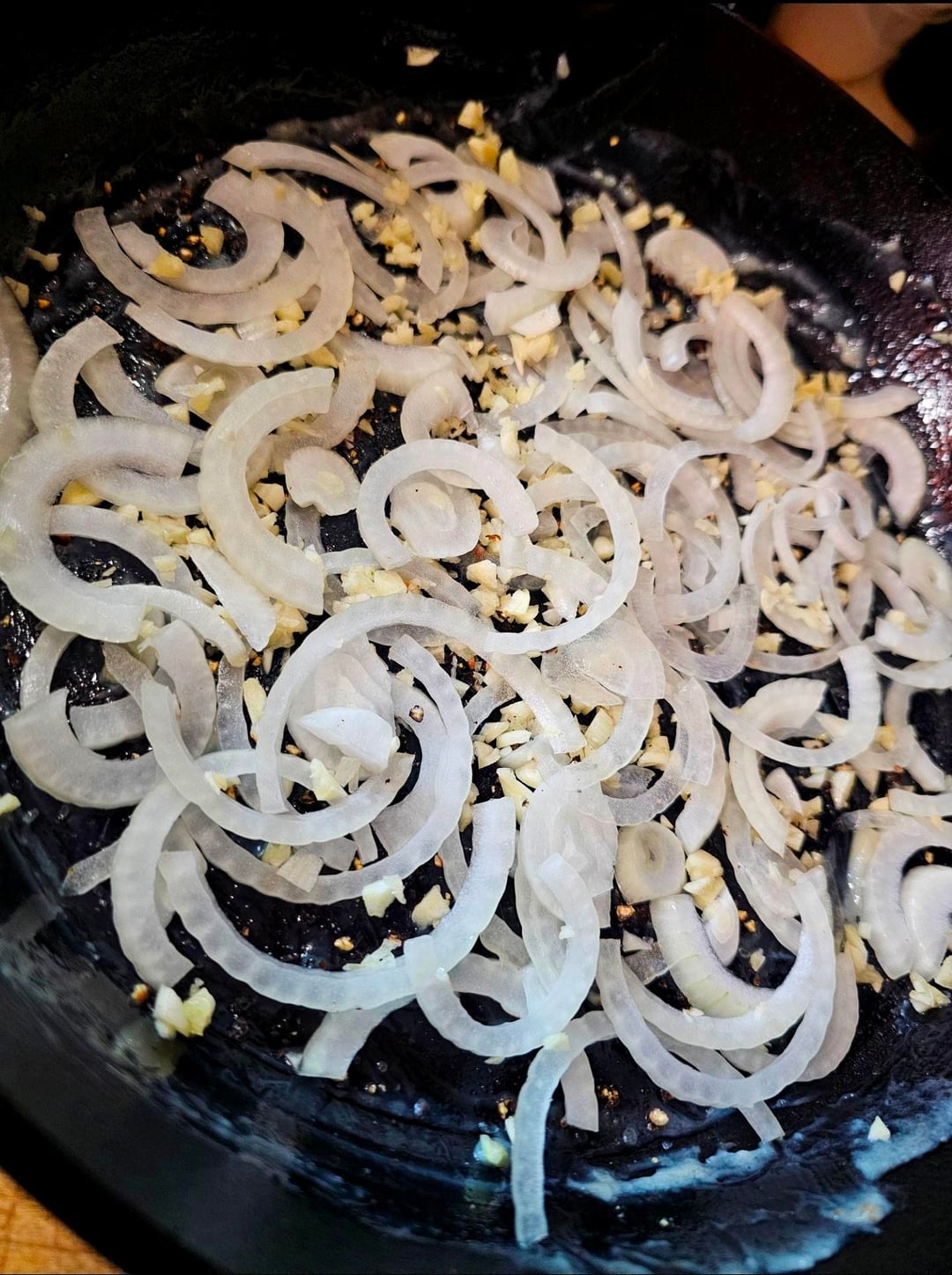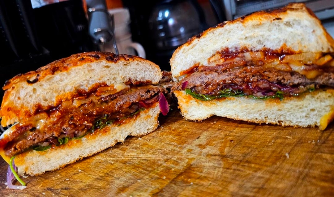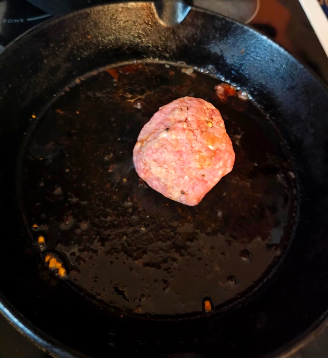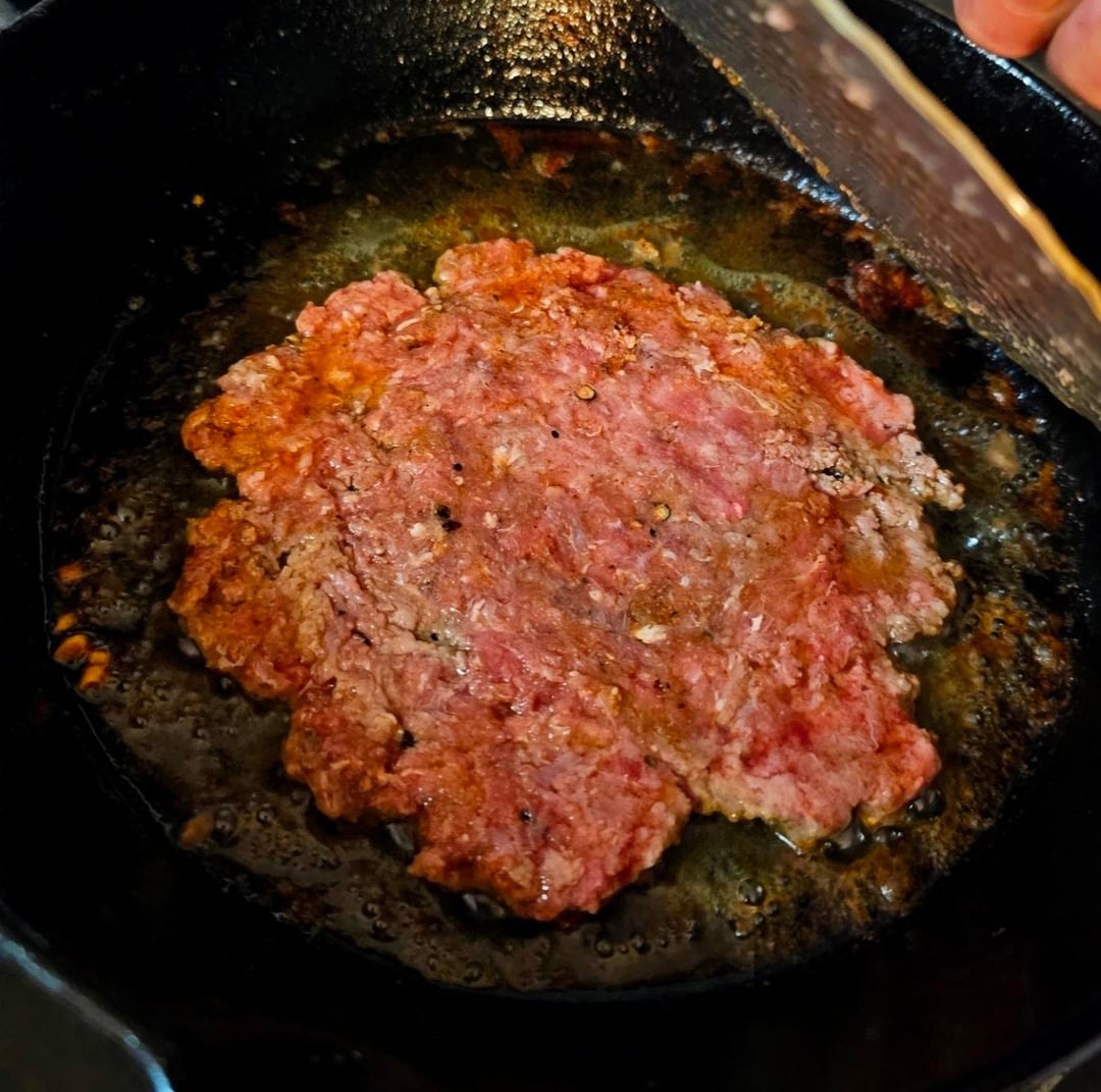 Make a ball of SPPOG seasoned beef, cook a few strips of bacon and crisp up some garlic in the fat, then smash your meat into the garlicky bacon fat. Brown, flip, add cheddar, bacon, pepperjack, and the crispy garlic, then wait for the bottom to brown.