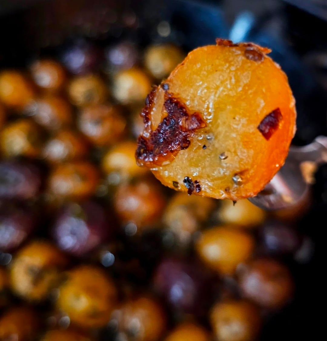 Ever tried smashed roasted potatoes? They are the bomb!!! Very crispy.