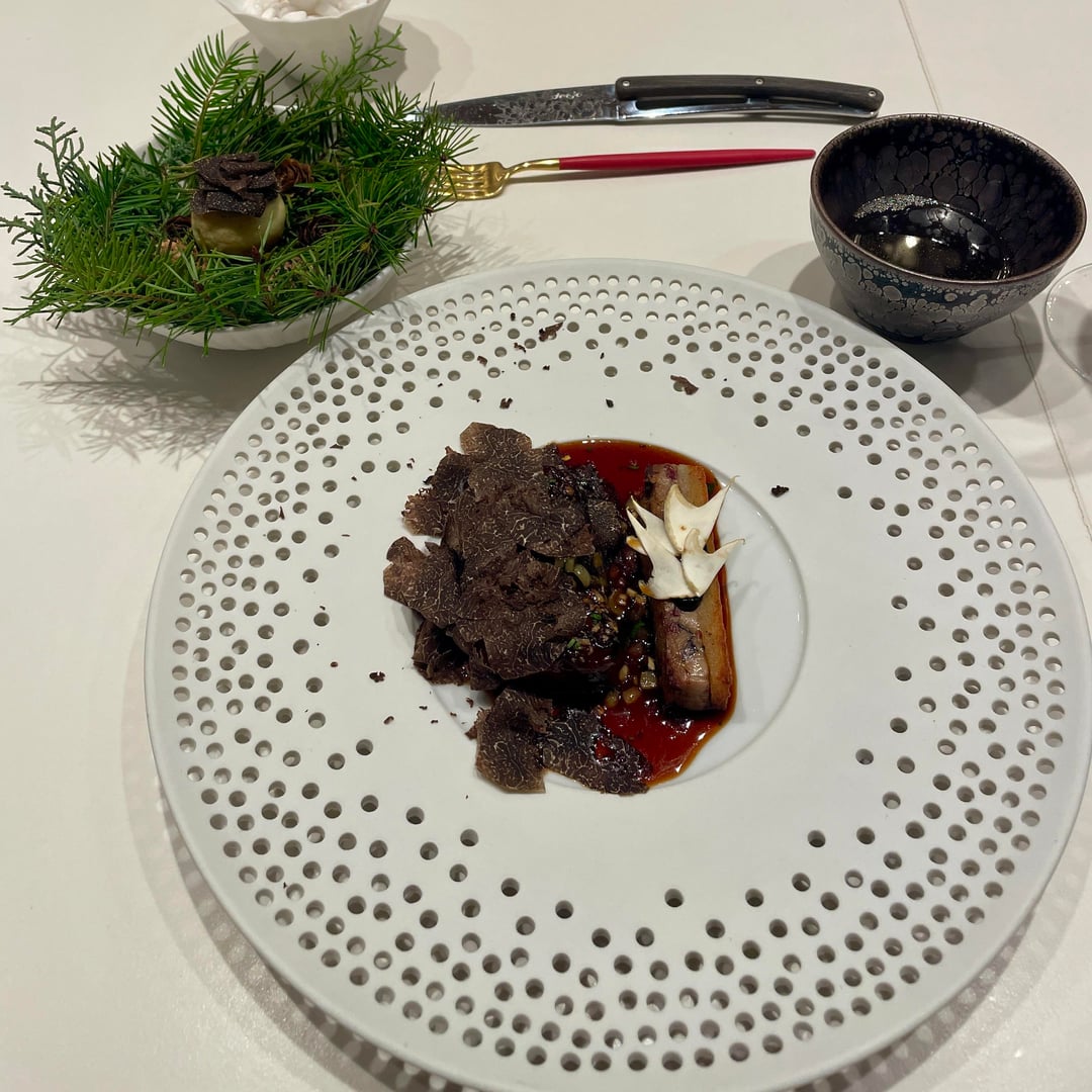 Scallop: This dish was quite lovely. The scallop mousse inside the mushrooms you dipped in the sunchoke sauce tasted great. The meaty scallop was cooked/smoked for a short time over a very strong open fire, and served in a smoky mushroom-black garlic sauce. If I’m being nitpicky, the scallops they choose was perhaps a bit to sweet, but still a great dish.