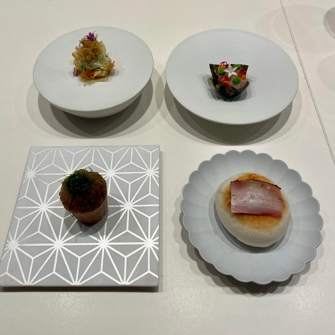 Amuse-Bouche: Besides the bottom-left bite, which I thought was way too salty, all the small starting bites were solid, with good flavor and texture!
